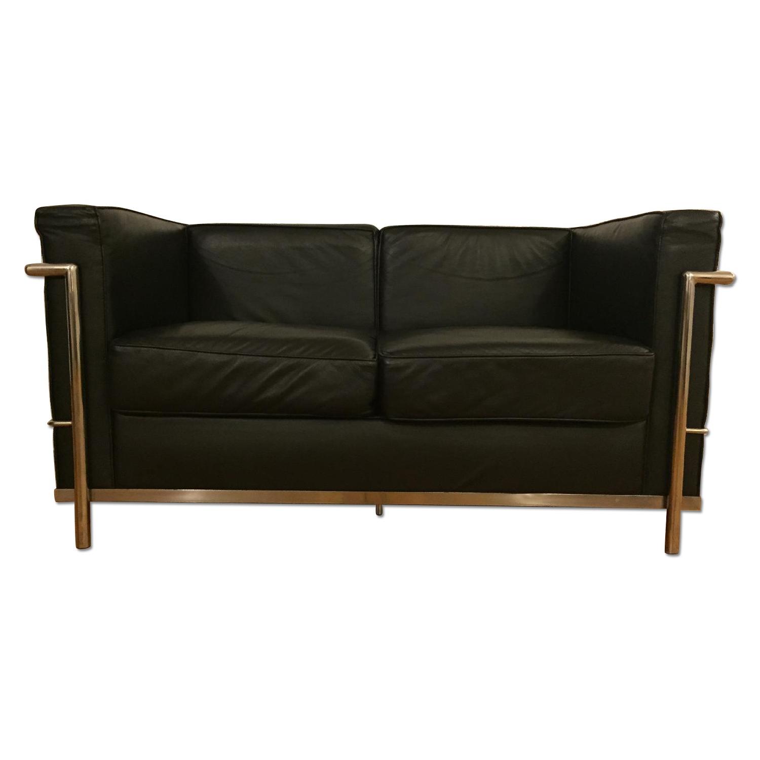 Seller's Notes:The LC2 Petit (or Petite) series is the smaller of two versions Le corbusier created. A striking feature of the LC2 is the externalized metal frame supporting the base, extending as the legs and running the entire length of the piece. Its not just the front of the LC2 that is attractive, the metal frame work means design detail from the sides and back allowing for easy placement even in the middle of a room.