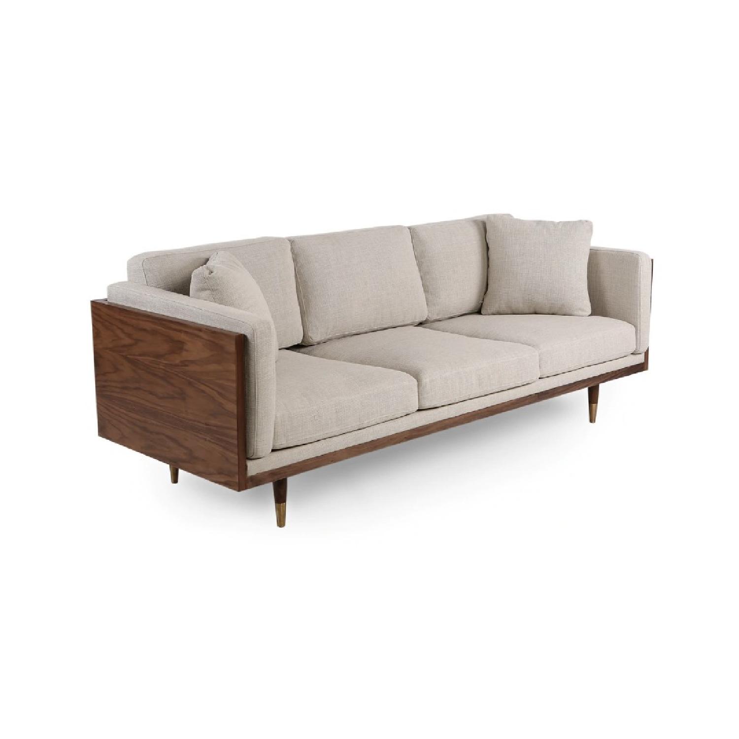 Seller's Notes:Kardiel Woodrow Lush in Walnut/Urban Hemp. Pillows included. Only a little over a year old. I love this couch, but am moving and am getting larger couch for the new place and hope I can find a good home for this one. A little wear on the edge of the frame, which is pictured. Otherwise in very good shape.