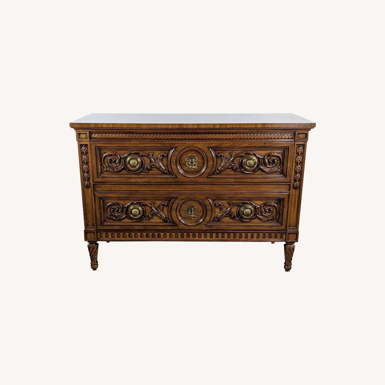 Seller's Notes:Karges Louis Xvi Walnut Chest; Hand-carved Detail; Neoclassic Frieze. Brand: Karges. Model: . #SKU: 1042788