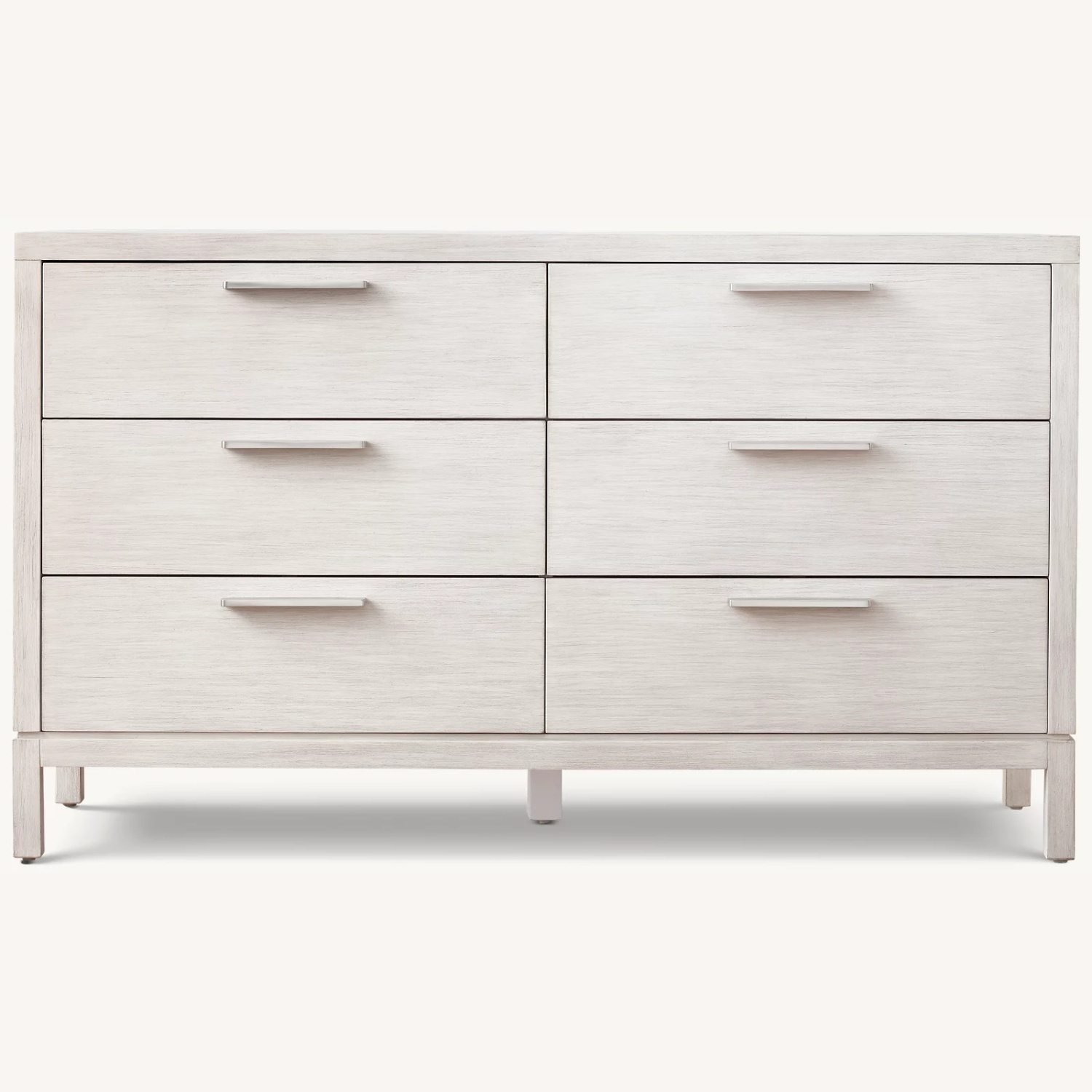 Seller's Notes:Details Handcrafted of kiln-dried hardwood with fine veneers using mortise-and-tenon joinery Water-based finish is hand applied in an intensive, multistep process that achieves the authentic texture of time with gently worn edges 6 English-dovetailed drawers with wood-on-wood glides, dust panels and tip rails Cast-metal hardware is finished in Aged Pewter Nylon glides on feet Dresser doubles as a changing station with addition of our wide dresser topper (sold separately) This item is handcrafted with meticulous care. Given its hand-finished nature, each item is unique and no two will be exactly alike. Anti-tip kit hardware and installation instructions included. Please note RH white glove delivery service does not include tip restraint installation. We strongly recommend installation of the included tip restraint in order to securely anchor the product to the wall, preventing risk of serious or fatal injury. Use coasters under beverages to prevent marks and stains Wipe with a soft, dry cloth free of harsh chemicals or abrasive cleaning materials. Avoid direct sunlight and heat to protect the finish. Wood swatch is 6" square; free shipping