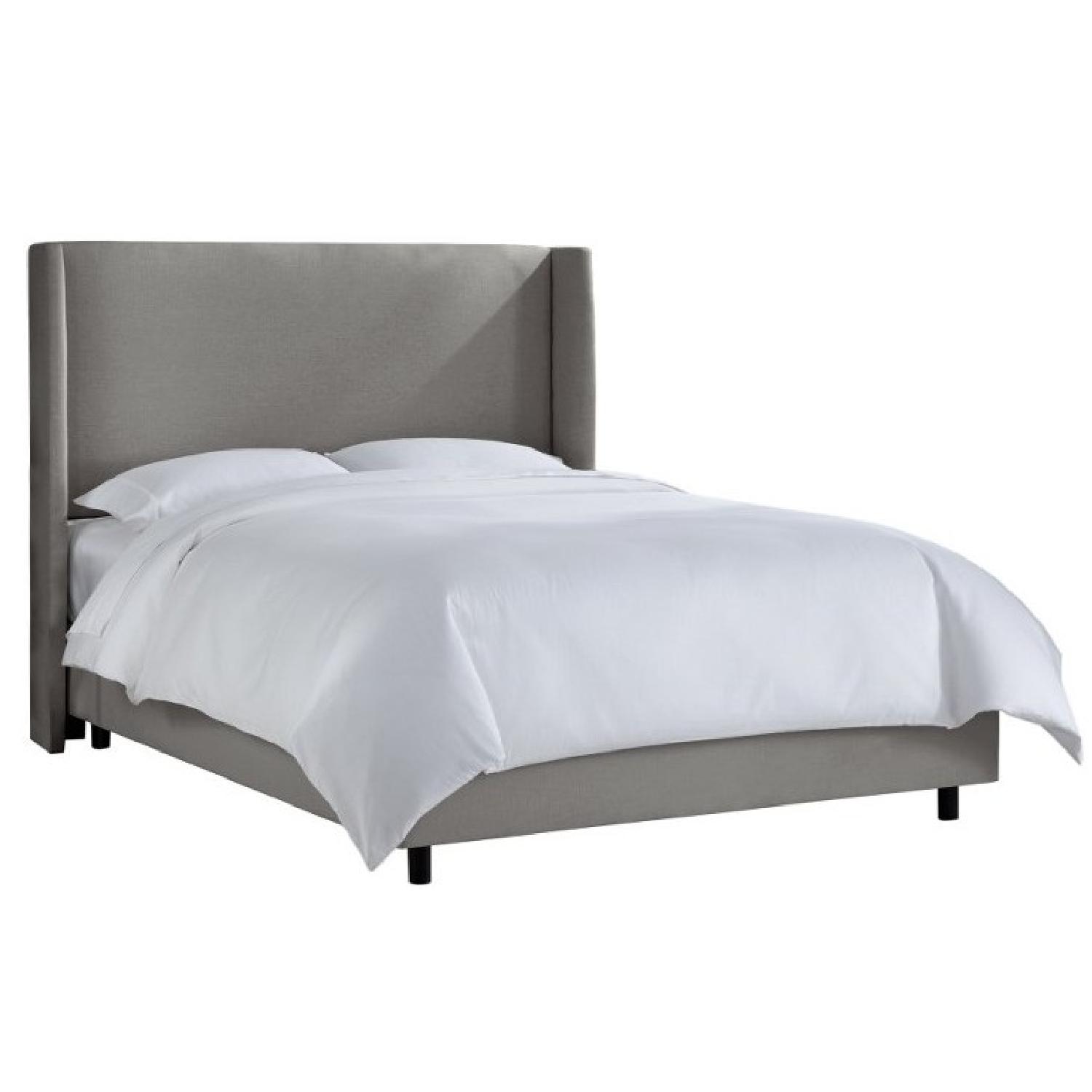 Kelly Wingback King Bed w/ Headboard in Gray Linen