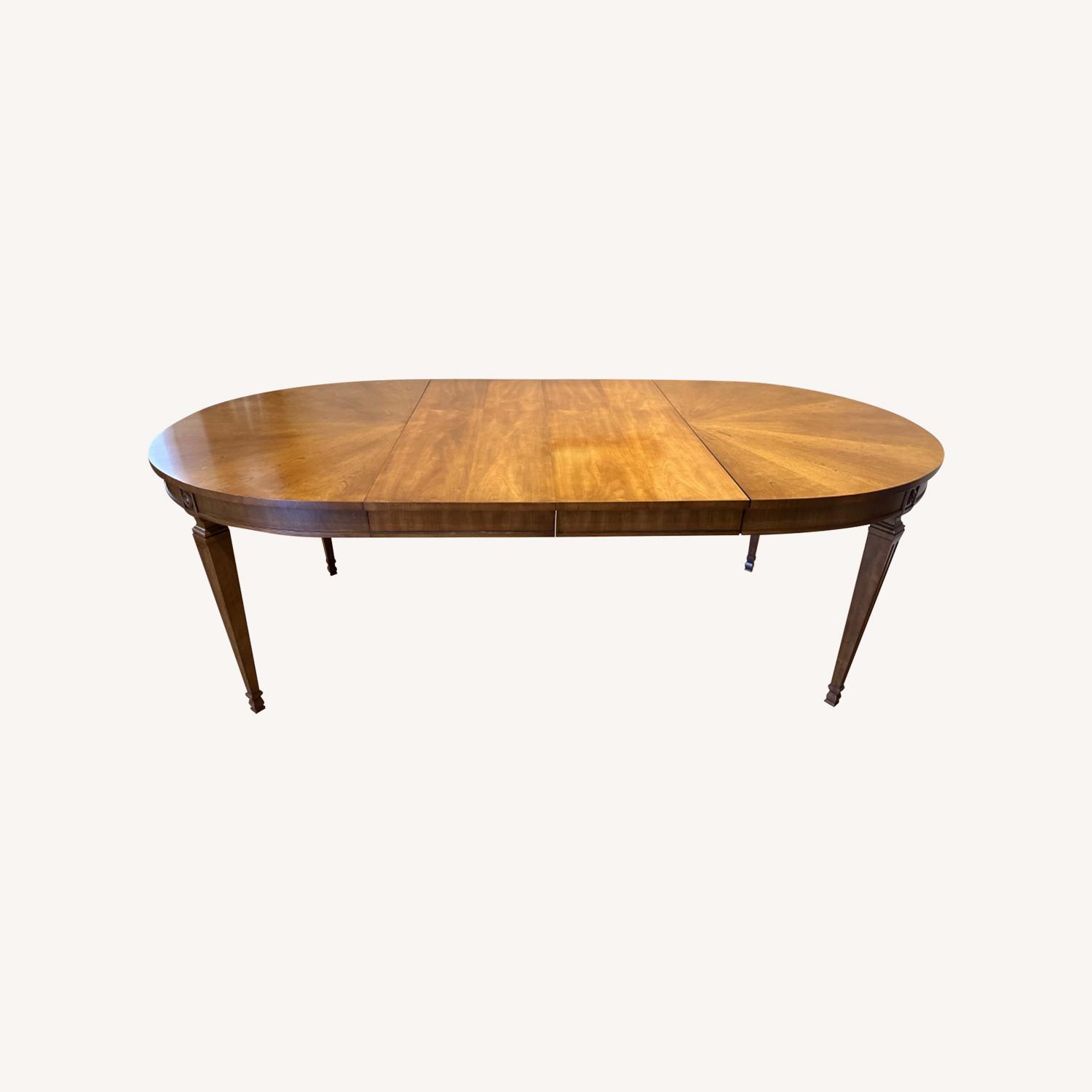 Seller's Notes:In my family since the 1960s, this beautiful 3-leaf expandable table is a lovely centerpiece to any dining room. Use with no leaves at just 52” long or expand with up to 3 leafs, each 16”, for a maximum length of 100”. Chairs sold separately.