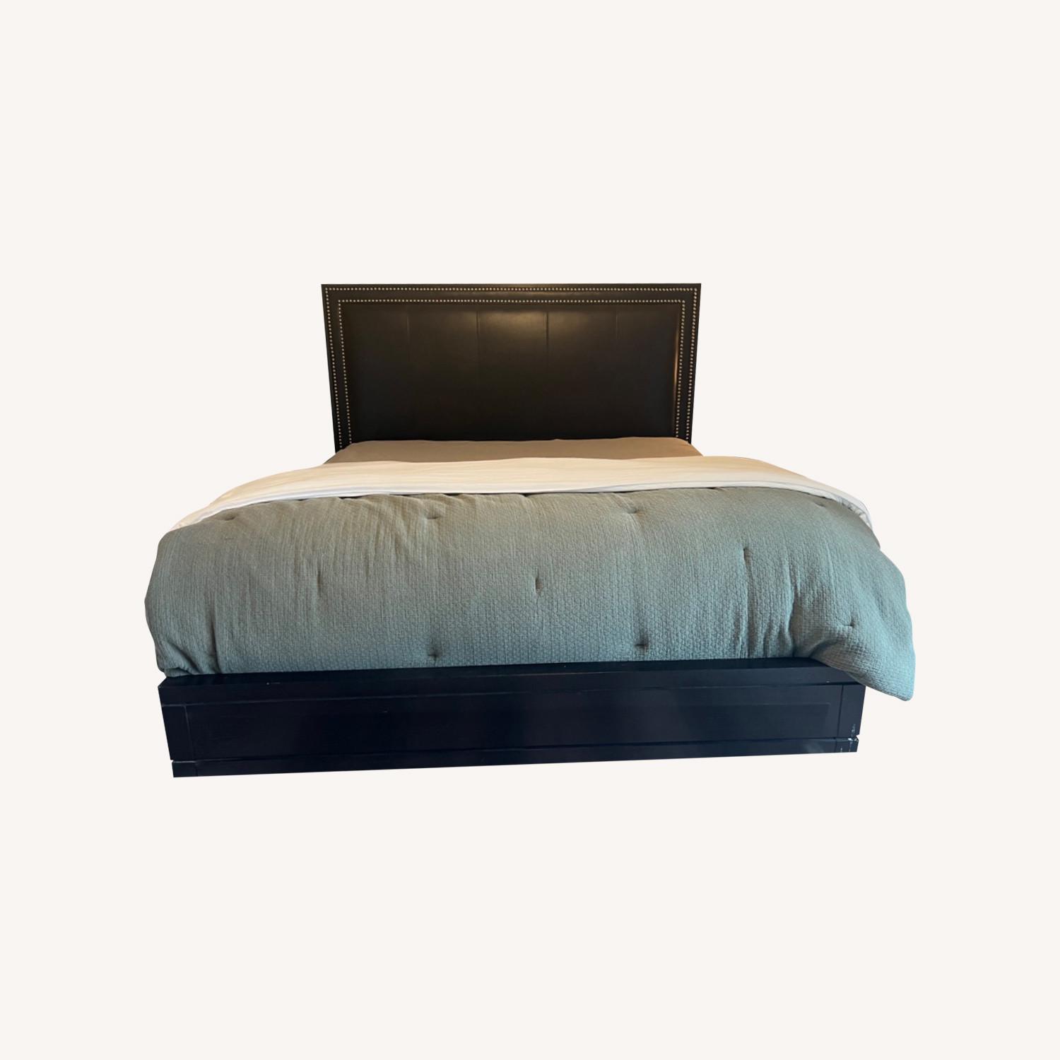 Seller's Notes:Gorgeous soft black headboard with rivets. Very good condition for the age This headboard is a showstopper for any bedroom