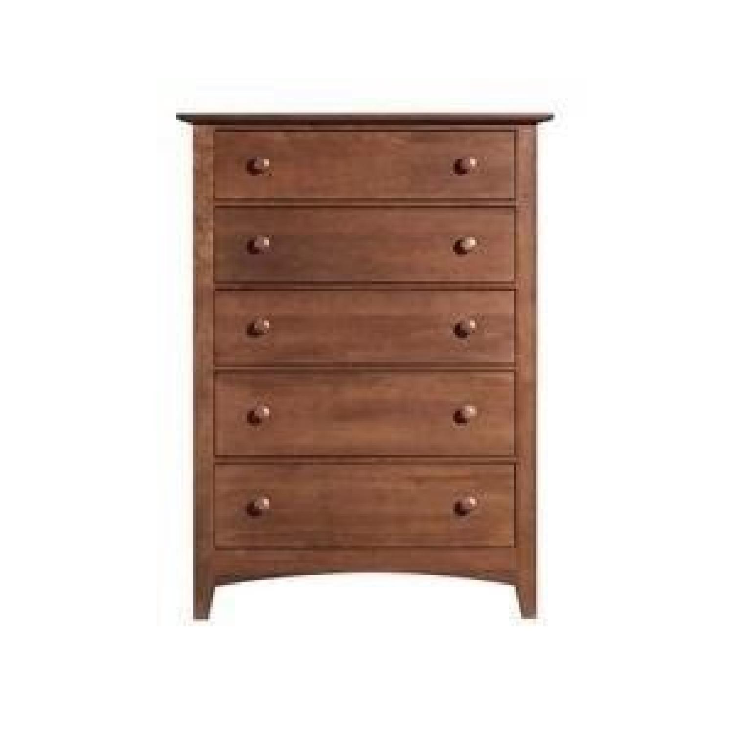 Seller's Notes:Shaker style Gathering House 5-drawer chest. Kincaid's Gatherings collection features an updated shaker style and is made of solid wild black cherry sourced from the Allegheny Mountains. Five drawer chest (satin nickel drawer pulls included, still in original bag) 36"W X 19"D X 48"H. (original cost $999).I also have Queen platform bed 66"WX 84 1/4"D X 50"H (original cost $1395) and Two night stands 26"W X 16"D X 23"H. Good condition (top shows some wear, one has extra set of satin nickel drawer pulls). (Original price $650 each). I'm downsizing and can't take these with me.