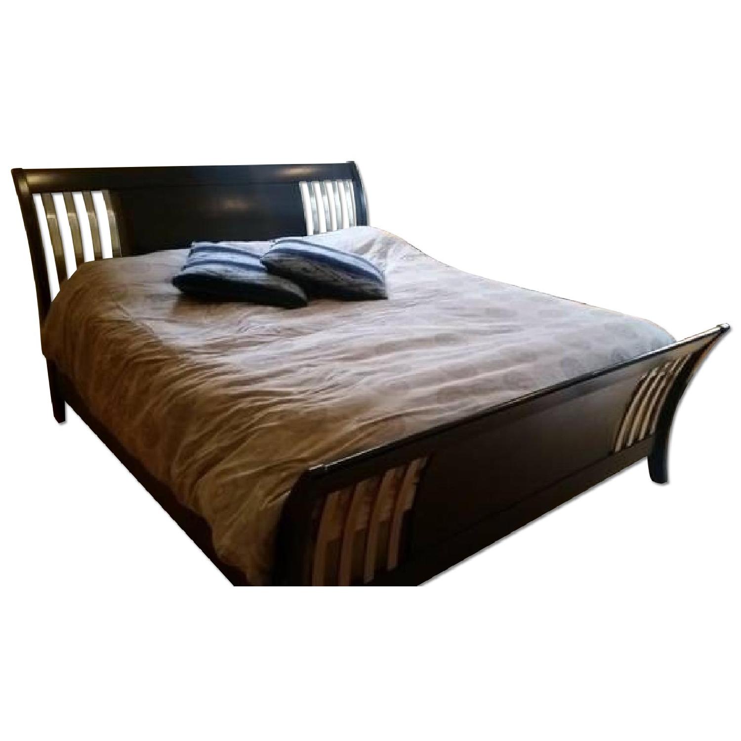 Seller's Notes:I am selling in excellent condition a king size sleigh bed frame. Includes 2 wood pieces, and metal frame, and all hardware and screws. My home is non-smoking, no animals, excellent condition furniture.