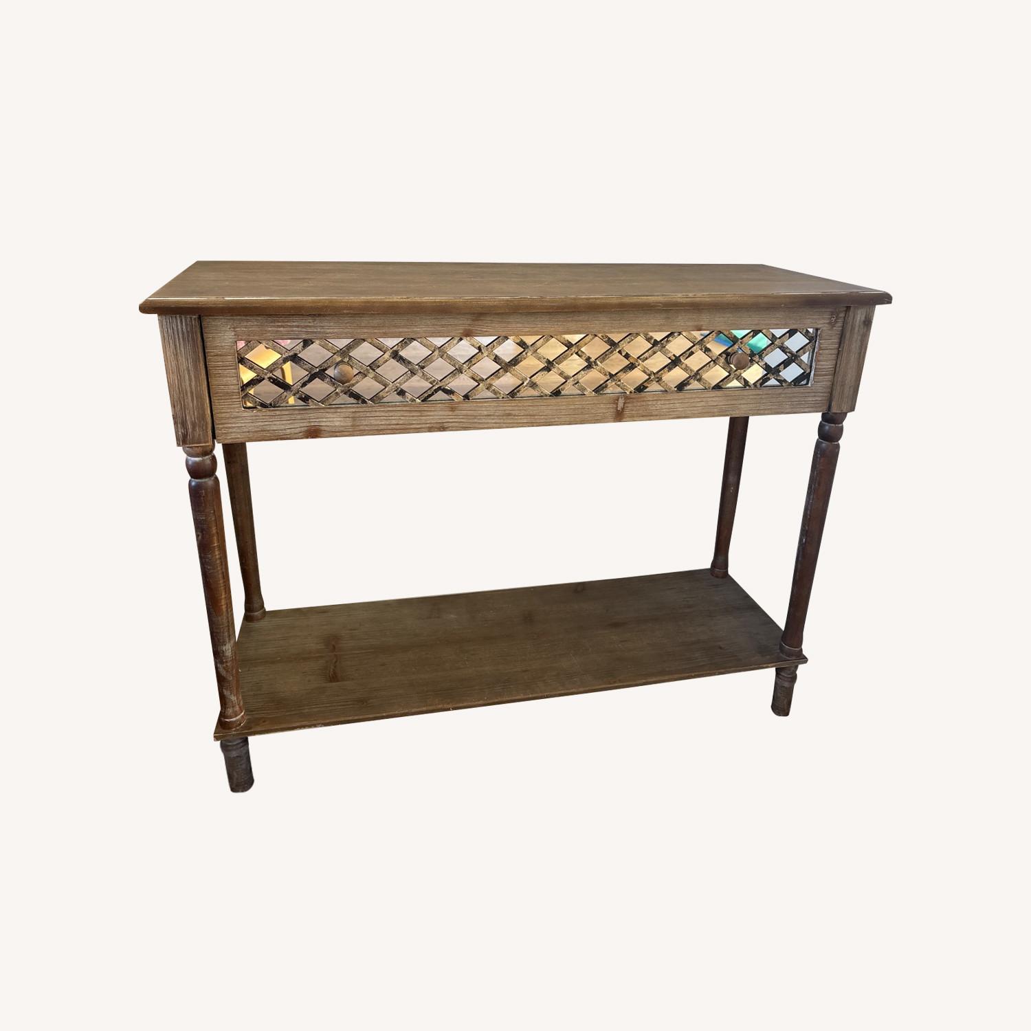 Seller's Notes:Beautiful entryway table with mirror work on the front. It has a beautiful weathered look ad can be painted to match your room.