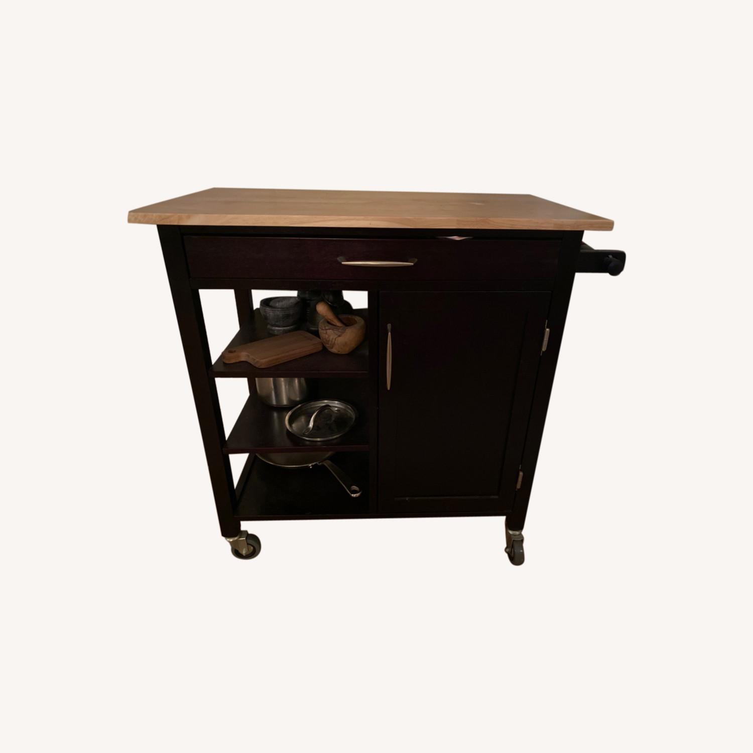 Seller's Notes:Excellent condition kitchen island / cart on wheels! Great storage, lovely wood finishes. Perfect addition to any kitchen needing some extra counter space !