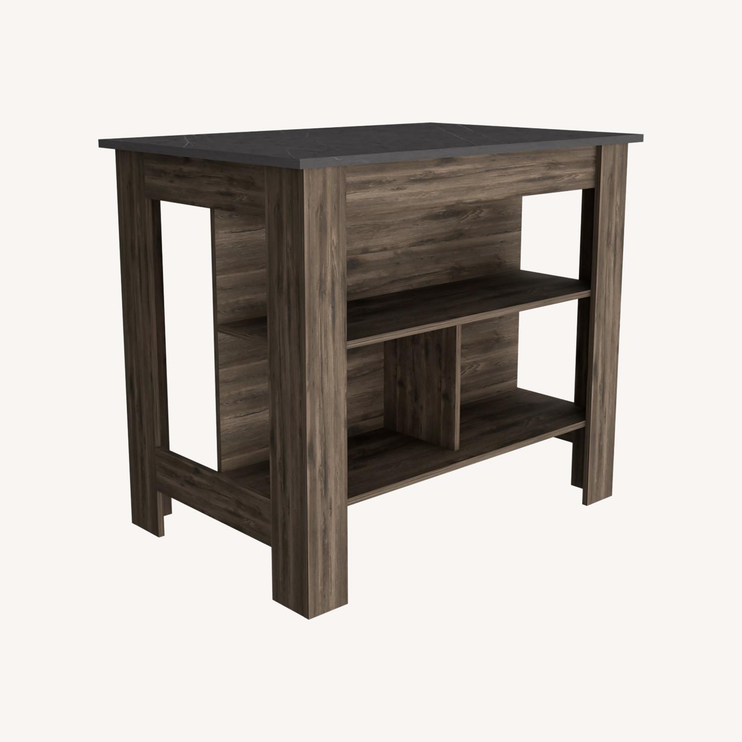 Seller's Notes:"Dozza Kitchen Island, this unique kitchen island brings life to the interior of your kitchen thanks to its modern ergonomic design; it also has colors that give glamour, luxury, and elegance to the interior of your kitchen; this kitchen island is an excellent choice for medium and large you a spacious top surface (27-inch deep x 40.5 inches wide) with scratch-kitchens that want to give life and unique designs, it is an efficient piece of furniture that does not occupy great space inside your kitchen. It is made of wood with a beautiful color combination between the base and the top. It will enhance your kitchen space by giving resistant melamine. Below the top, you will find a great space to store your stools on one side and a convenient shelves space on the other, with one wide shelf at the top and two smaller frames at the bottom. This shelving space is a practical place to store your pans, pots, or even decor looks fantastic on this kitchen island. Designed with elegant black-light gray manufactured wood finish. Dimensions: Height: 35,4” Width: 40,5” Depth: 27,5” Furniture Type: Ready to assemble (full assembly required)Certifications: CARB phase II compliant – TSCA Title VI Compliant. Warranty: 1-year warranty coverage in wooden parts- 1-year warranty coverage in hardware pieces since its manufacturing date found in the lot number printed in the product box.Shipment details: Free shipping to the 48 contiguous states - delivery time: Between 2 and 5 days depending on the customer's location, season, and weather factors.Other details: This product does not include decorative or background elements; Check that the box is in good condition, and well packed, and check with the help of the manual that the corresponding parts have been included; For more information regarding warranty, shipment details, cancellations, returns & replacement parts go to the bottom section of our website to learn more; Installation & Assembly Instructions included."