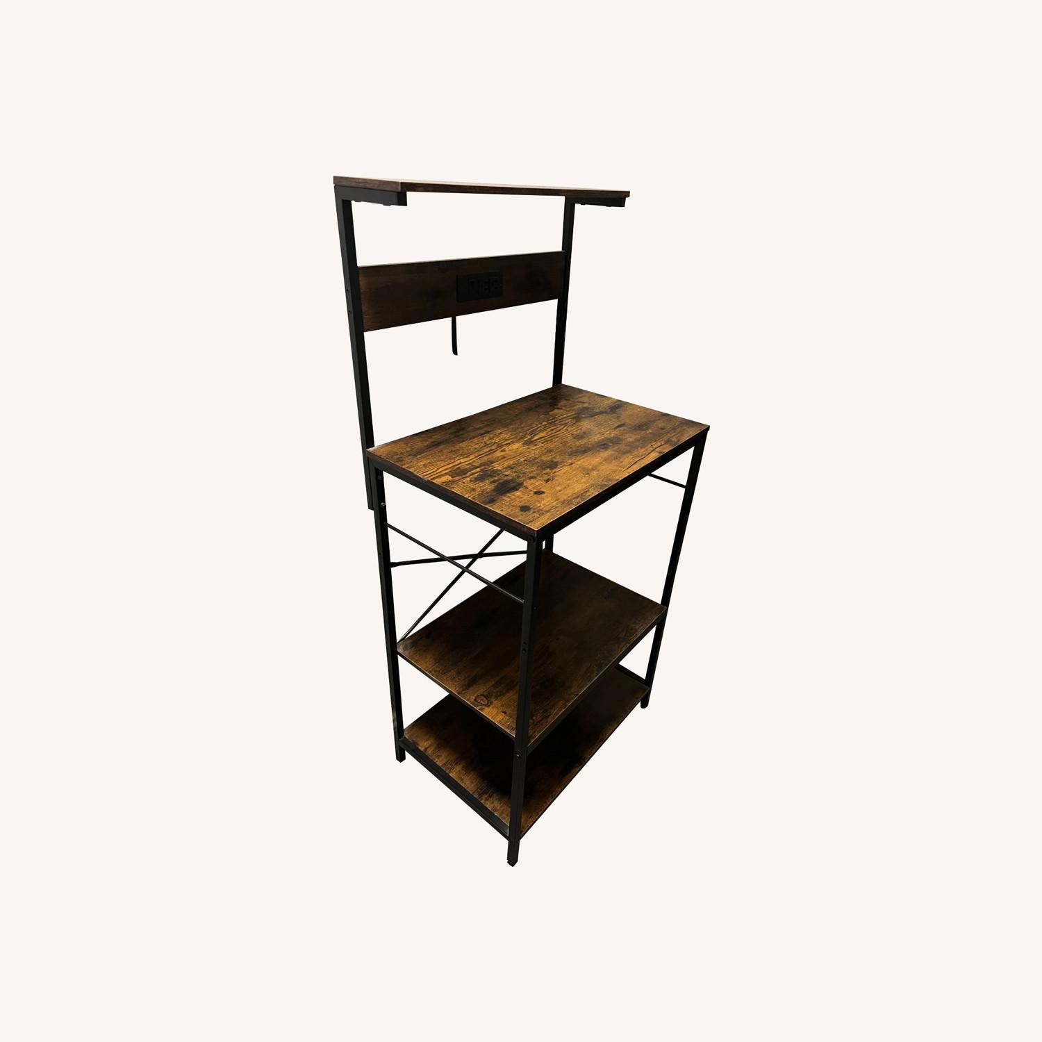 Seller's Notes:Only selling this because I just moved into a new furnished apartment, so I have no need for it. Still in excellent condition. It looks beautiful, is study, and served its purpose well for me for the last year. This basically extends counter space by providing a rack with a power outlet (great as a microwave/smoothie machine stand) and for general kitchen storage / coffee bar table purposes. Brand is 'SUPERJARE'.