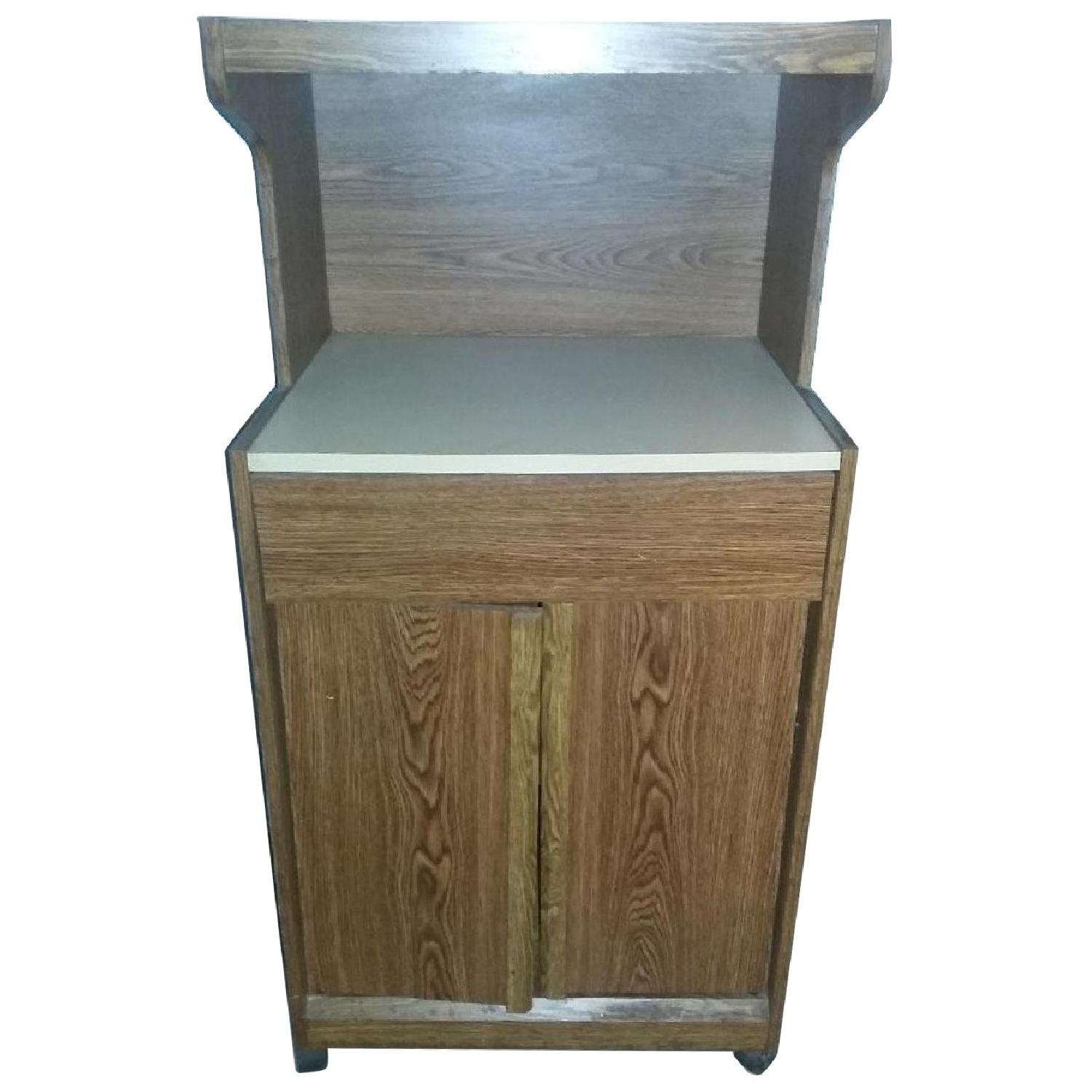 Seller's Notes:Versatile wheeled cart. Small micro wave ovens, toaster, pots, pans...and so on. I’ve used this in my kitchen a few years ago. Sturdy and a battery operated under the counter light works well with this unit.