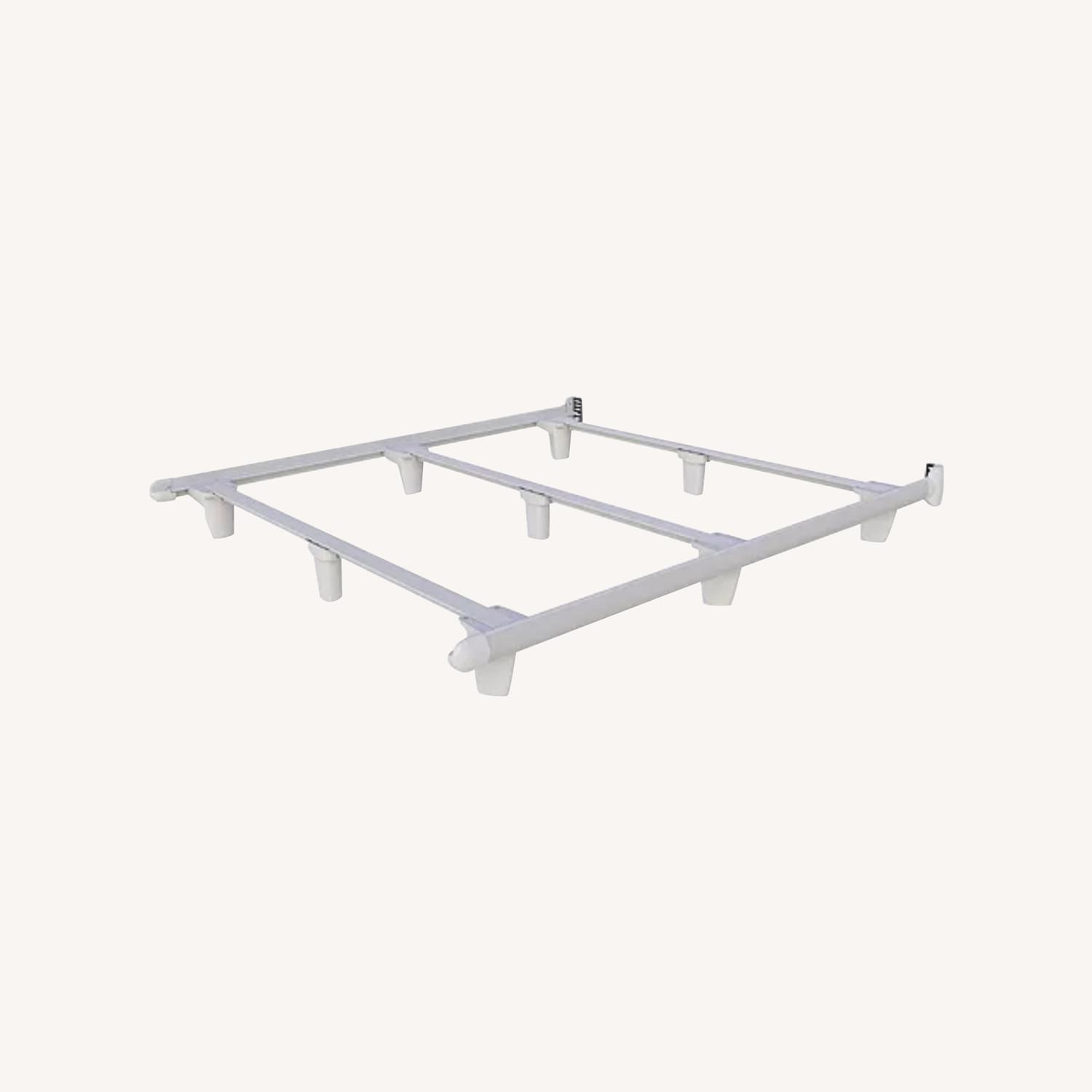 Seller's Notes:Knickerbocker Embrace Queen bed frame in white. No tool assembly T-shaped rails eliminate flexing Minimizes squeaking and rattling Made in USA Steel/injection molded fiberglass resin
