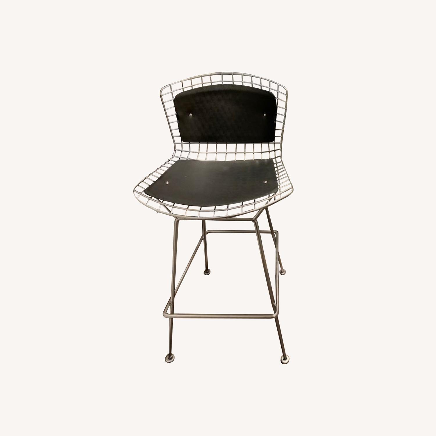 Seller's Notes:BERTOIA COUNTER BAR STOOLS - SET OF 4 - BLACK/SILVER Like new - very minimal wear shown. Minor marks on the leather, which could be removed or replaced. original retail $1800 per chair set of four for $1995 or two for $1195 - message to discuss local pickup in Michigan available! WIDTH: 21.75"DEPTH: 22"HEIGHT: 43"SEAT HEIGHT 29.25"