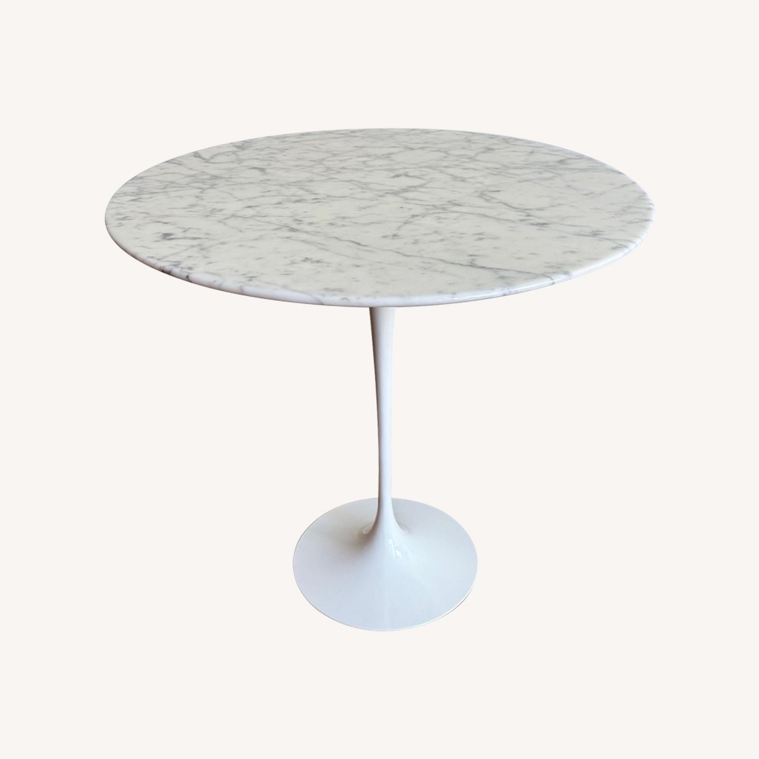 Seller's Notes:Barely used Knoll side/coffee table 20' wide, 20' tall with Carrara marble top and white base.