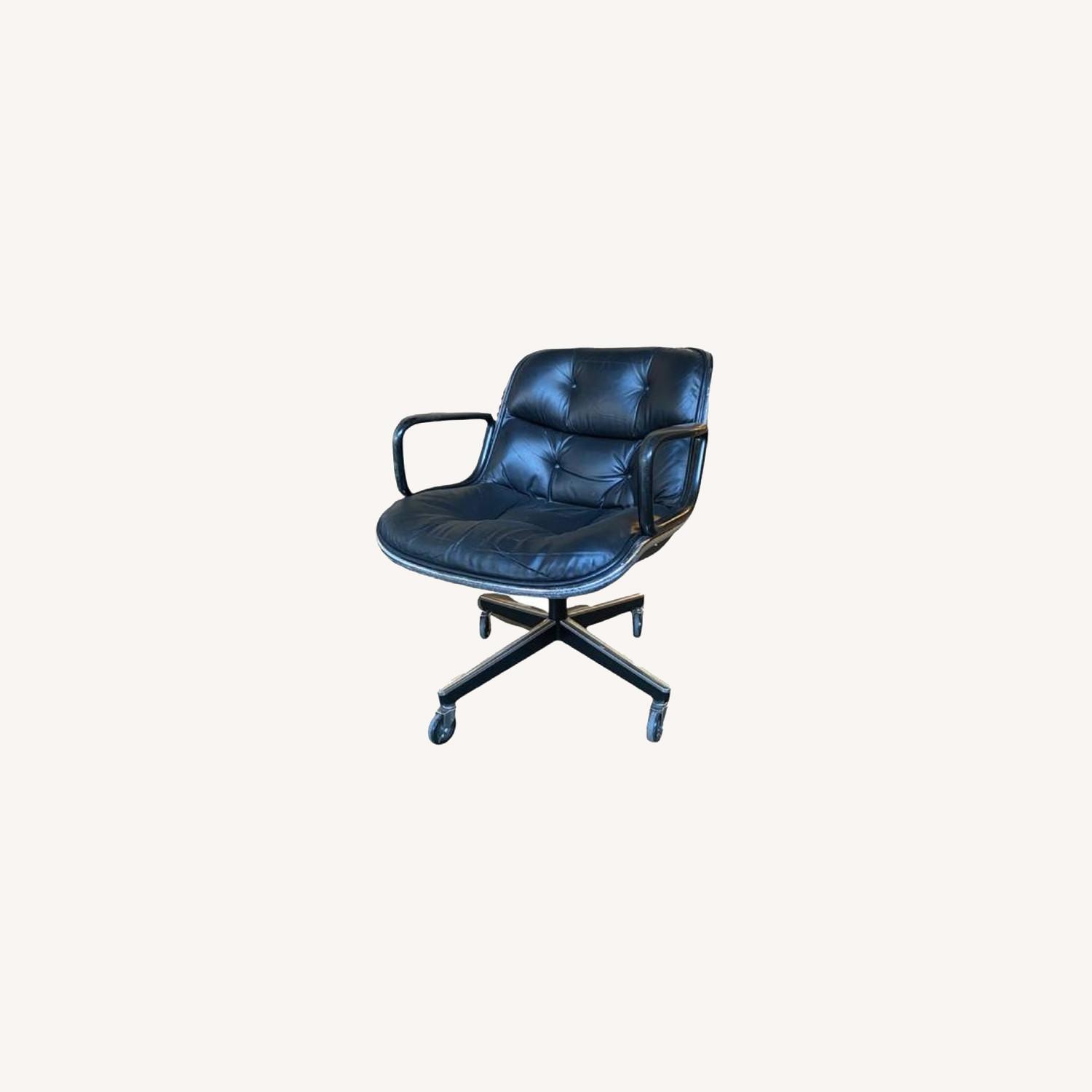 Seller's Notes:Selling a vintage Knoll Pollock executive chair in excellent condition. Early four-leg, wheeled (1970s), tilt and swivel adjustable tension base model with original black leather in perfect condition. Back is made of molded black plastic. Wear consistent with age and use. Please feel free to reach out with any inquiries!