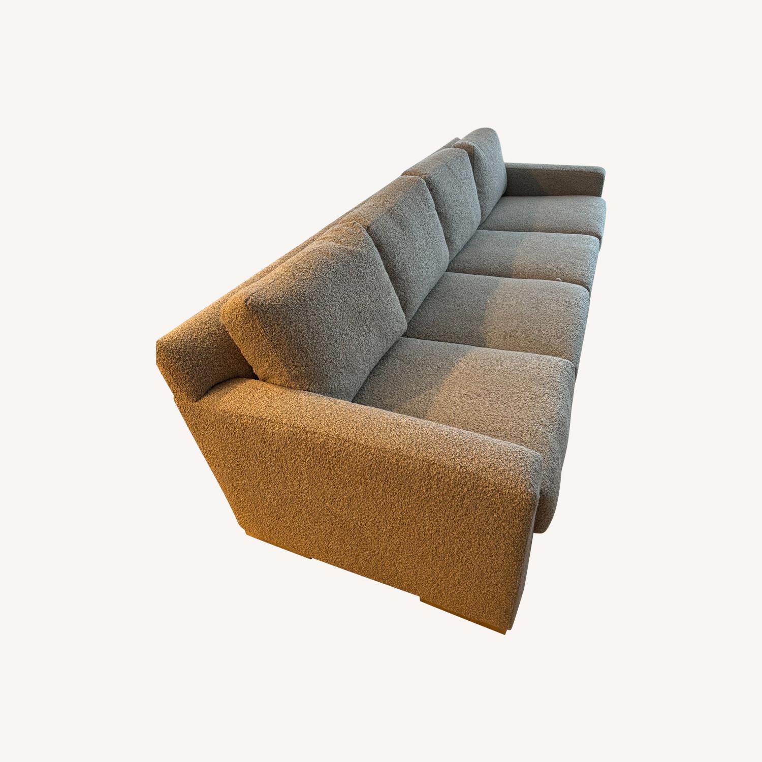 Seller's Notes:This is a beautiful taupe boucle kravet sofa with chrome feet. It is part of the Jazz collection. You cannot buy this sofa retail - it requires working with an interior designer. I've had the sofa for just under two years. It is in great condition, the cushions need to be fluffed but otherwise there are no stains or odors. The fabric is also extremely easy to spot clean! I am open to negotiation on the price, please make me an offer. Here is a link to the fabric: https://www.kravet.com/36120-106?queryID=20d98ecf2d86f1a5ca365958afbfb09b&objectID=343612&indexName=kravet_production_kravet_us_products
