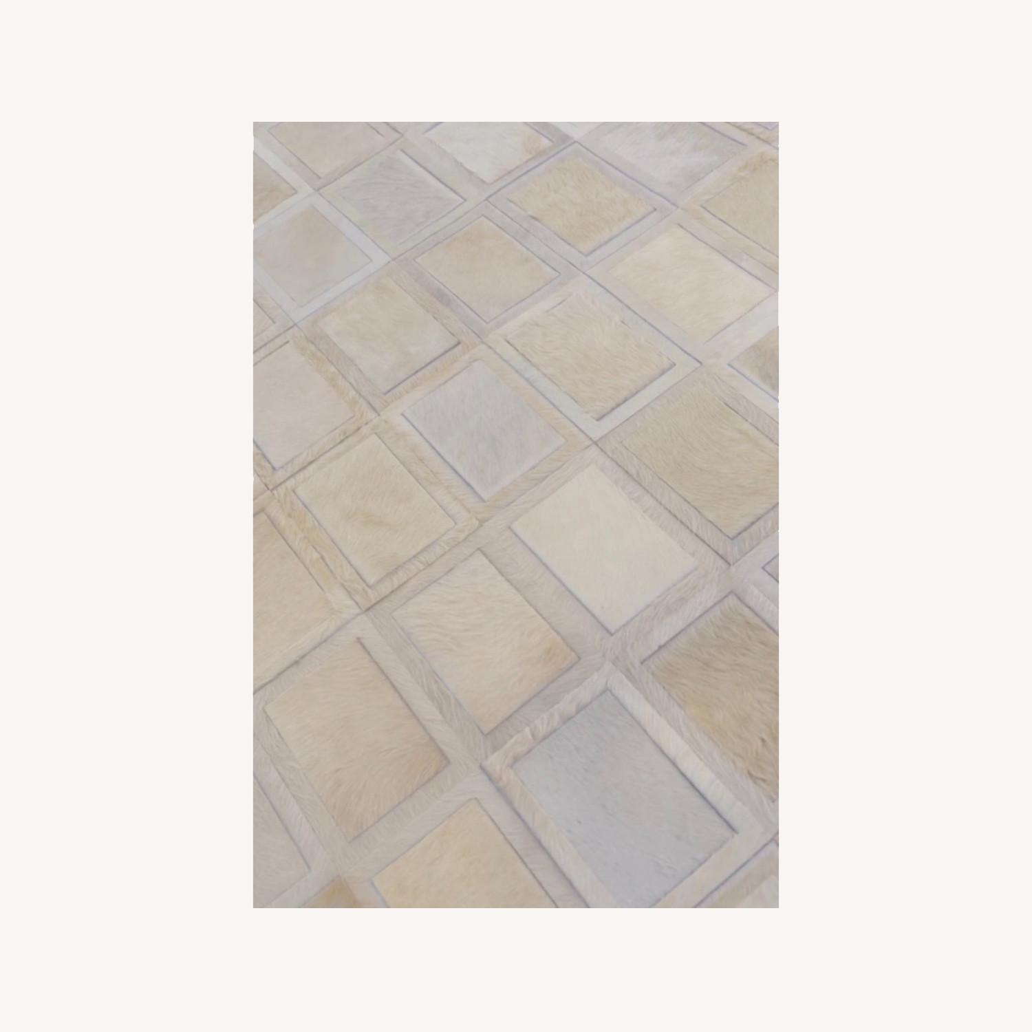 Seller's Notes:Promenade in Cream. Promenade is characterized by a grid of banded rectangles. The classic, versatile design of the pattern made it an instant standard of the Kyle Bunting portfolio. product details: materials icon Constructed by artisans with the world’s finest hair-on-hide, in stunning and innovative designs, these rugs are true works of art that will elevate a space and inspire the extraordinary. non-slip backing: non-slip icon Our proprietary backing prevents bunching, helps extend the product's life, and eliminates the need for a rug pad.