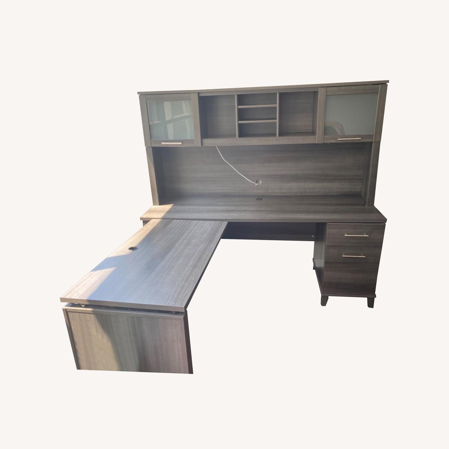 Seller's Notes:Dark grey desk Easily convertible to a standing desk at 2 different heights Printer not included