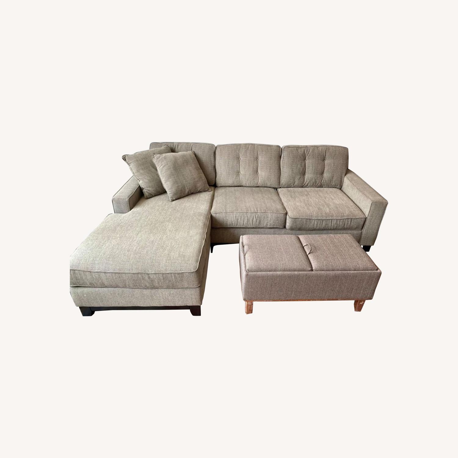 Seller's Notes:In great condition, super comfy Color: Beige the 65" depth is for the longest part (ottoman not included)