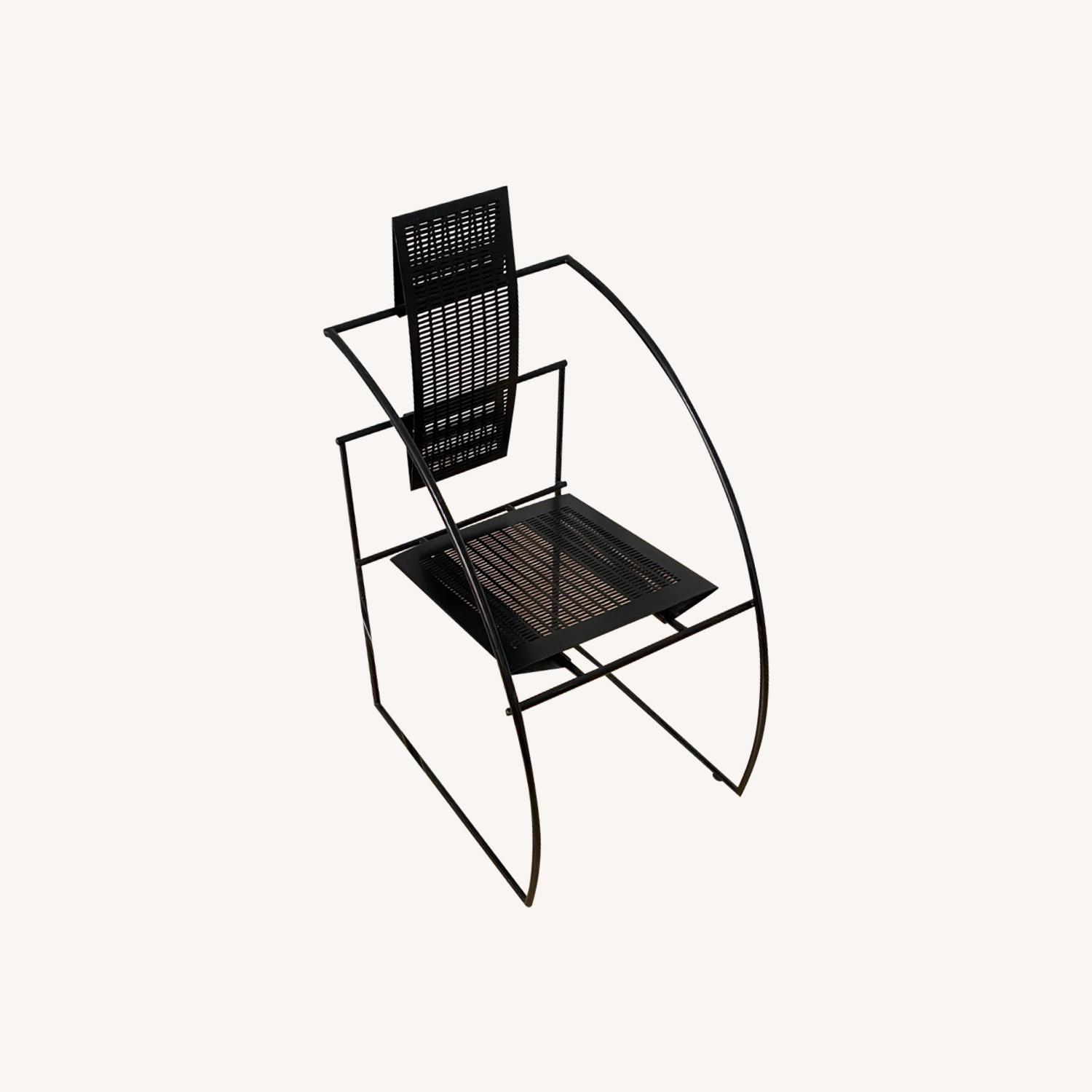 Seller's Notes:Two available - Quinta Chair by Mario Botta for Alias Gorgeous and comfortable statement chairs. Some signs of wear to the finish as pictured, but barely noticeable. Designed in 1985 with a frame of steel tubing and perforated and folded steel seat and back, the chair is as much architecture as seating. The folding of the seat and back allow for flex in the material as you sit or lean back, adding an unexpected comfort to the structural beautify. And the chair's architectural lines are very reminiscent of Botta's design for the San Francisco Museum of Modern Art.