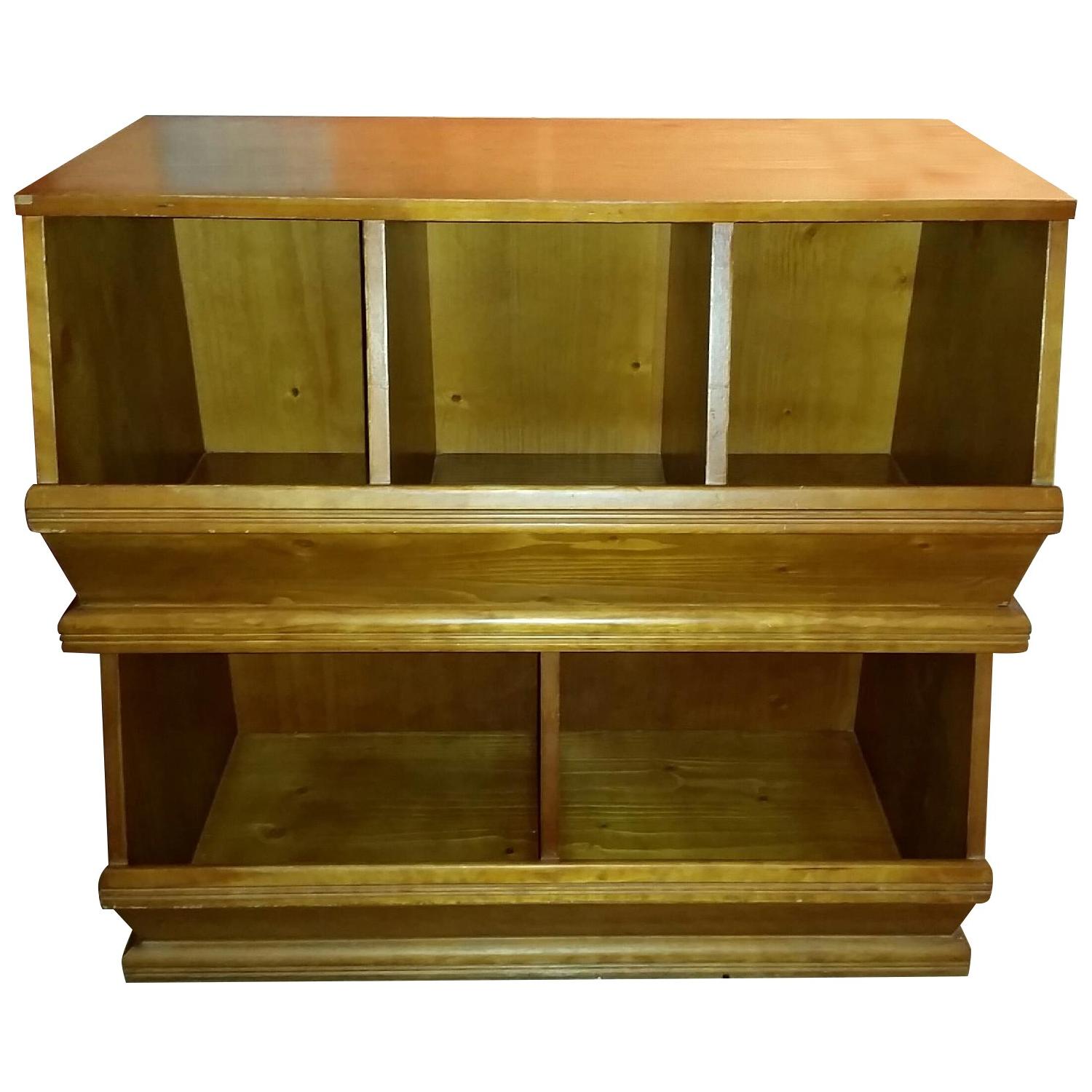 Seller's Notes:Up for sale is a set of 2 Land of Nod stackable storage bins (one with 3 bins, one with 2 bins). I brought these storage bins for my daughter several years ago. These bins have moderate wear with some small blemishes and marks, as seen in pictures. This set is valued at approx. $320 ($160 for each unit). It's a wonderful piece of furniture for any room. It has many uses to accommodate your storage needs.