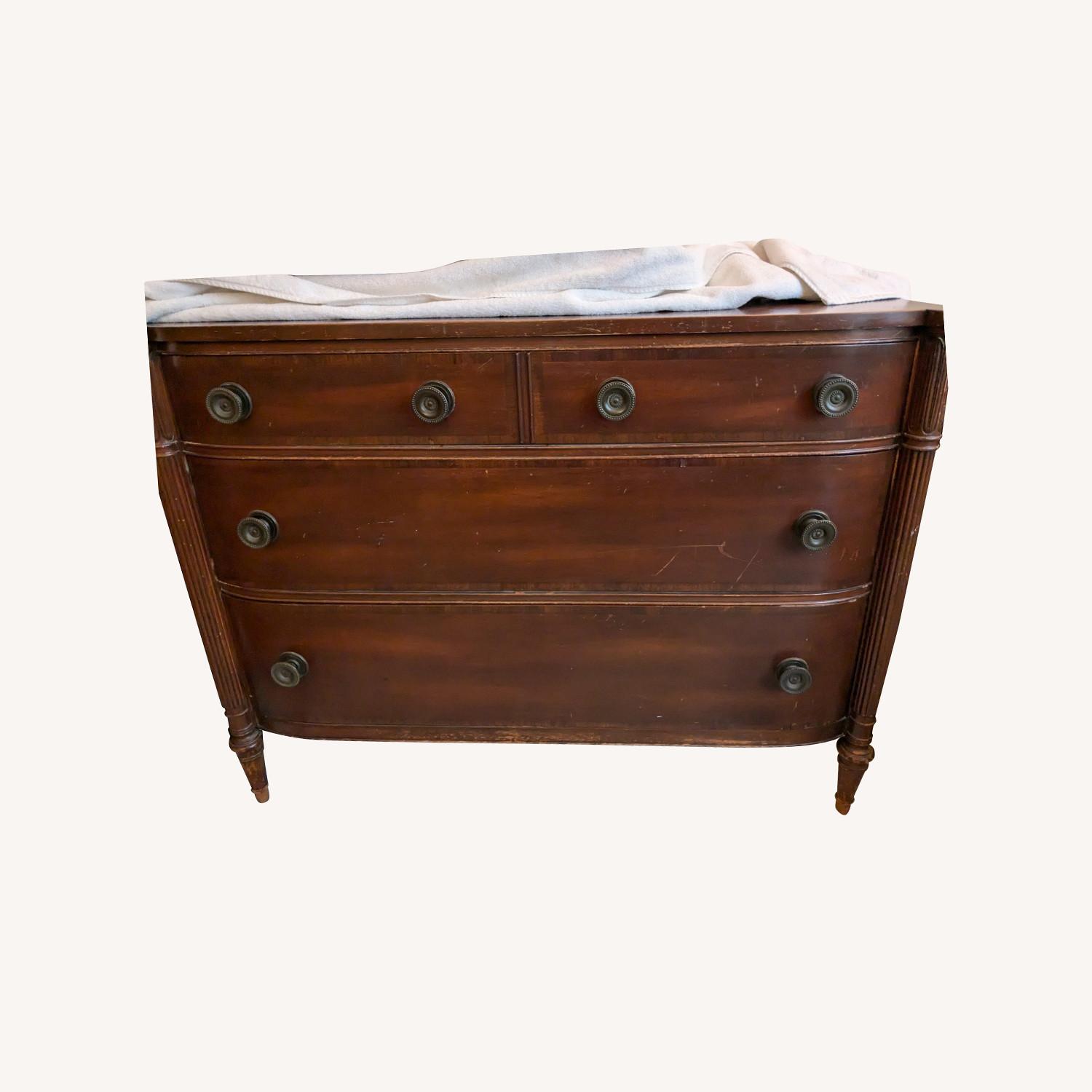 Seller's Notes:Vintage beauty. My grandmother's wide, 5-drawer, solid wood with dovetails in drawer construction, original solid brass hardware, dental detailing, but lots of wear and tear. Needs to be refurbished, but this item has moved from NJ to FL and up to NYC, where it resides today. Would be an amazing piece if it were painted and refurbished - could even be used as a sink vanity if you put a nice piece of marble on it! I've run out of room to keep it in my apartment. Photos show construction, blemishes, and how it looks in a bedroom. Pretty heavy item due to it's solid construction. Comes with the matching mirror, which is shown in the photos. They don't make furniture like this any more!