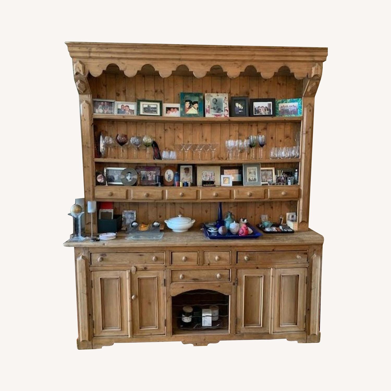 Seller's Notes:Originally bought from ABC Carpet & Home. This is a dramatic piece in size and uniqueness. So many storage options between many drawers, shelves, wine holder, cabinets. Makes a statement and is so very useful. Truly a special piece which is hard for me to let go but doesn't fit any more. 8' High 7' Wide 2' Deep. Separates into 2 pieces for moving.