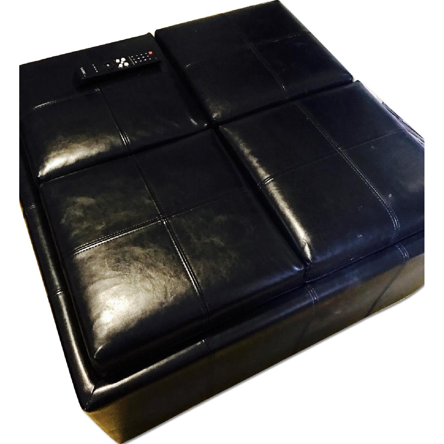 Large Black Leather Ottoman w/ Storage & Dining Trays