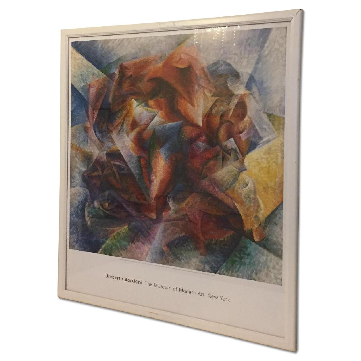 Seller's Notes:This beautifully framed print of Umberto Boccioni's "Dynamism of a Soccer Player" adds an exciting splash of color to any room. The custom size frame has slight scratchss and discoloration that are noticeable up close.