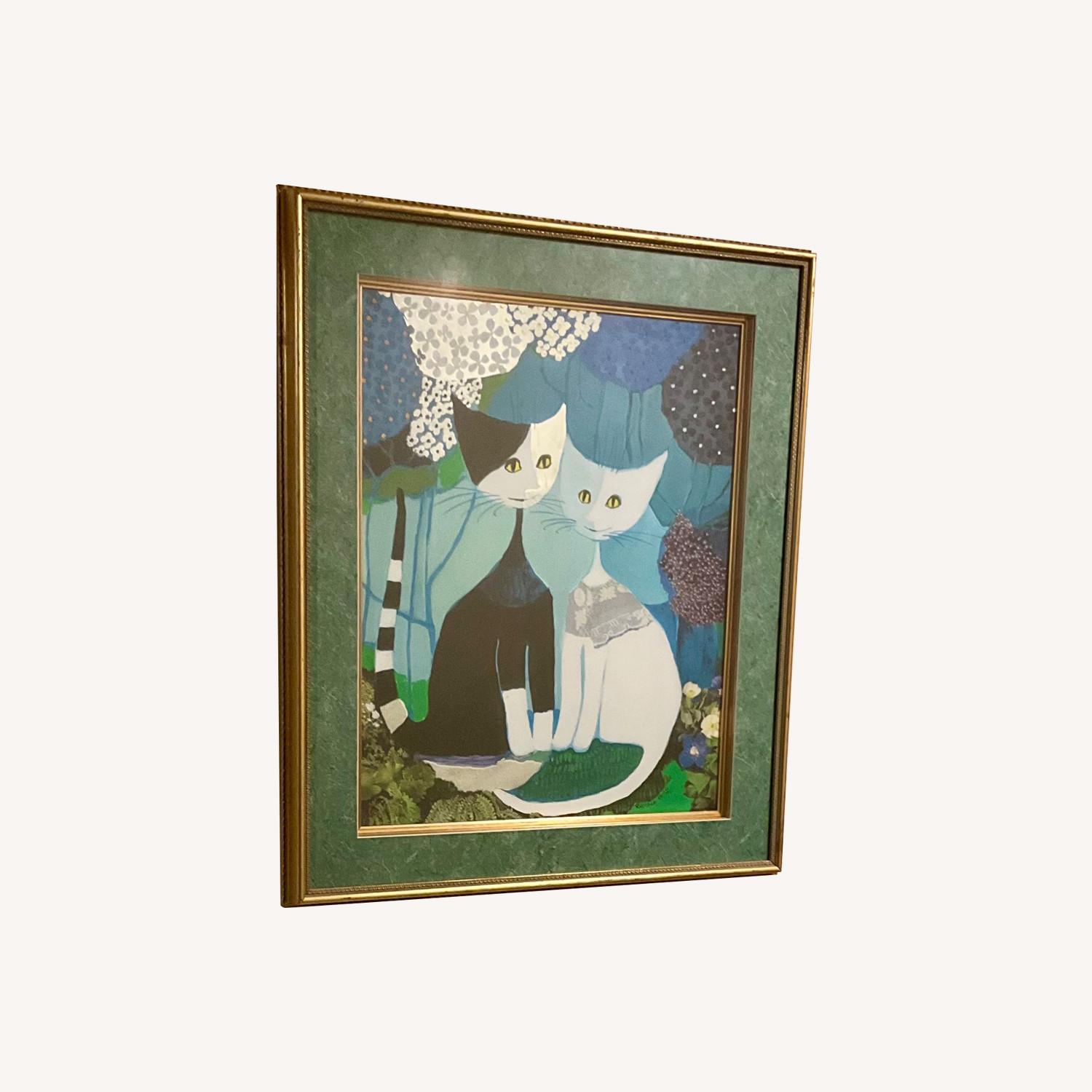 Seller's Notes:Next on our moving sale is this large 1992 fine art print by Rosina Wachtmeister. This piece is silver foil enhanced and professionally framed. The image is perfectly preserved under the glass but we received it with some damage to the lower left corner of the frame. Please see photos for condition.