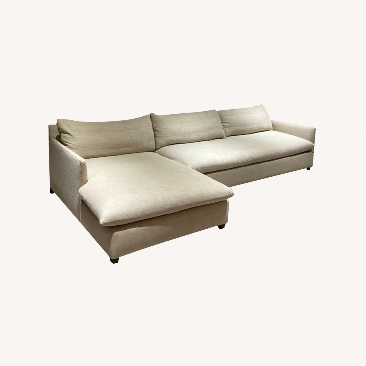 Seller's Notes:Incredibly comfortable custom couch that has served me well, but I'm going through a breakup move & need to downsize ASAP! Specific dimensions are shown in the photo, but overall the sofa is 41" deep, the chaise is 66" long, and the whole thing is 135" wide. It's Linen high performance fabric which means it's treated for stains and heavy duty use - it has practically 0 signs of wear. I also have a full set of replacement cushion covers that I'm happy to include. Please note for delivery: I will have to include delivery in the purchase, as I need the Couch Doctor to get it out of my apartment (it's how it got in). That means they will deliver it for free to your apartment and reassemble it there.
