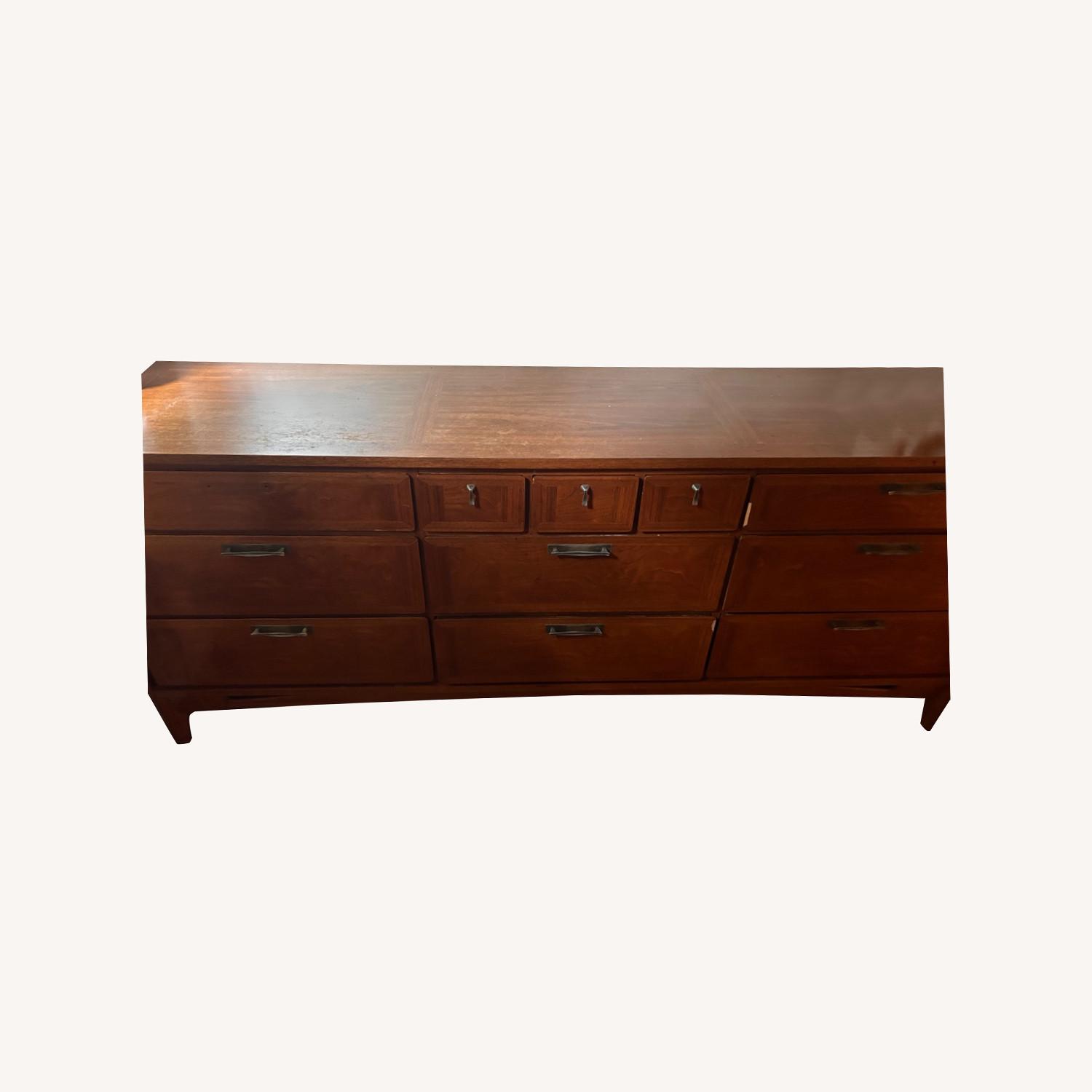 Seller's Notes:Large vintage dresser, 8 clothing drawers 3 small drawers, could use a little love but overall good condition.