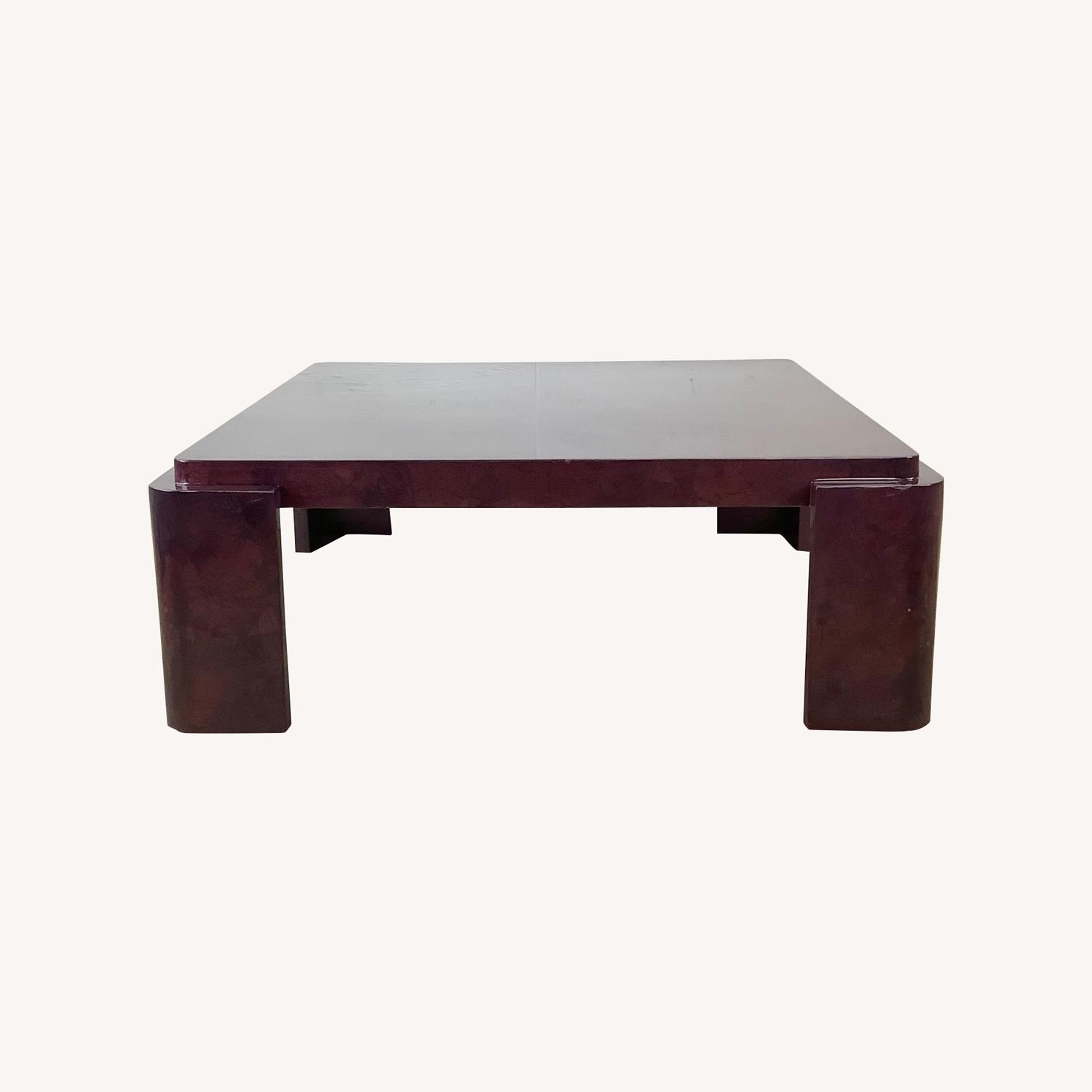 Seller's Notes:This showstopping oversized square coffee table is a true gem in the world of vintage modern furniture. Adorned with a luxurious purple lacquer finish, is a perfect fit for spacious interiors in need of a center table that brings with it the grandeur of post modern italian style design. Its bold color and postmodern aesthetics are a nod to the chic factor of mid-century furniture. The large surface area offers ample space, making it not just a functional piece but a striking focal point in any room. What sets this table apart is its commitment to sustainability. Choosing a vintage piece like this is not only a style statement but also an eco-friendly decision, reducing the environmental impact associated with new furniture production. This coffee table, therefore, is more than just a piece of furniture. It's a conversation starter, a work of art, and a reflection of discerning taste. It's perfect for those who appreciate the finer things in life and understand the value of design, quality, and sustainability. In summary, this coffee table is an unmatched choice for those looking to elevate their living space. Its blend of vintage charm, Italian design, and eco-consciousness makes it a unique and valuable addition to any home. Dimensions: 48w 48w 17.25h Condition: age appropriate wear, vintage finish worn, scuffs/scratches, edge wear, dings/chips, discoloration, see photos.