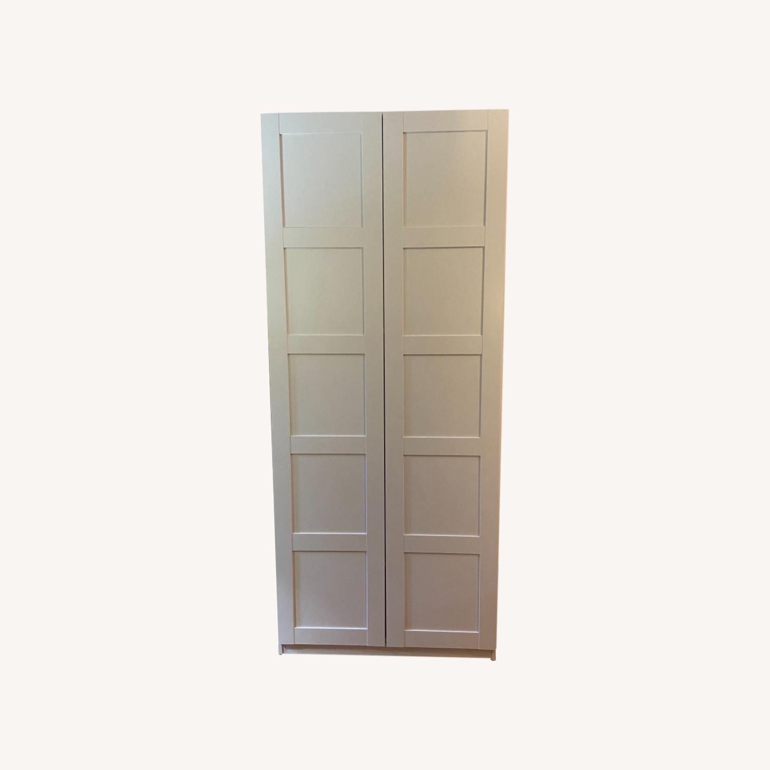 Seller's Notes:Hello! Large White Armoire custom built and ready to use! Includes 2 Shelves, 2 Clothes Racks, and 2 Doors that have soft closing hinges. Handles are available to add on, still in the package. Like new, spacious design comfortably fits 60 items on a single rack.