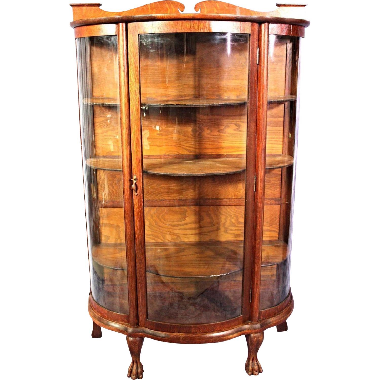 Seller's Notes:Express a distinct style and taste with this rare and highly collectible Larkin Co. oak and curved glass display cabinet that is in a class of its own. American, circa 1900. Signed. Height: 66", Width: 41 1/2", Depth: 17". Such incredible Larkin Co. centennial examples are highly sought after and are becoming exceedingly rare. This fabulous piece will be ideal for a discernible collector or a savvy decorator looking for an exquisite, timeless quality piece of huge character to position in the heart of their home. Pride of workmanship is visible on every detail of this carefully crafted cabinet, which is likely to act as a timeless treasure of household elegance for your family for future generations. *****Treasure Island Interiors***** It is hard to believe, but this highly prized and collectible curio cabinet would have been given away FREE for with the wholesale purchase of non other than soap. Larkin Company was not a furniture company; rather they produced soap in Buffalo, New York from 1876-1941. The "gifts" of furniture were given away with the purchase of soaps as competitive advantage over other companies, who were also giving away gifts. In an interesting yet ultimately not a surprising twist of history, the FREE furniture has turned into very collectible furniture even in a slow antique and collectible market. The piece we offer on this occasion is particularly precious in that, besides its nearly impeccable condition for its age, it retains the original label, which is not the case with most of the surviving examples. *****Treasure Island Interiors***** Adding sophistication to your décor, this rare cabinet offers an elegant and stylish wherever placed. It is unique in its structural integrity and its perfect functionality, exhibiting careful proportion and scale, detailing and execution not often encountered. Not only does this beautiful piece possess the aesthetic to die for; it is also an outstandingly versatile and practical choice, allowing you to perfectly showcase your china, art and favorite collectibles. It is meant to function within the realities of day-to-day living, while allowing you to create a space that best amplifies your personal style. ****Treasure Island Interiors**** Offered in very good vintage condition; minor signs of considerate use consistent with the normal, residential employment it has seen. The quality and craftsmanship speak volumes. The pictures are of the actual item you are purchasing, so please look at them closely to confirm its condition and outstanding appearance, as they are part of the description. This splendid vitrine possesses fantastic vintage appeal. It is truly a treasure and an investment for the generations. Vintage items are incredible pieces of history and are always in style. They also offer a meaningful way to contribute to the environment by recycling pieces from the past. Comes from a clean, non-smoking, pet free home. This rare piece represents spectacular value for money, and we have no doubt it will serve and delight its new owner for many years to come.