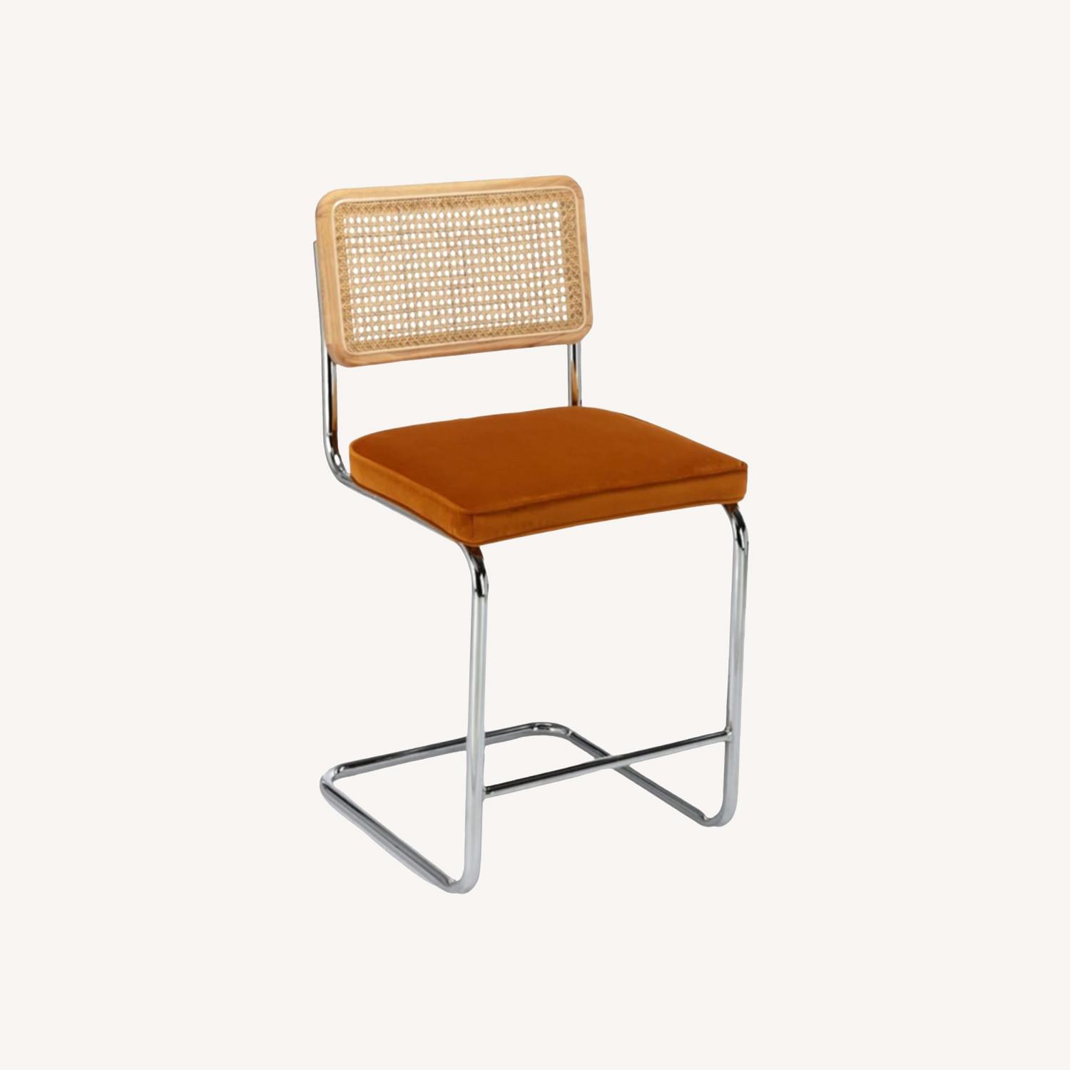 Seller's Notes:"tep into a world of timeless charm with this vintage-inspired chair that effortlessly blends the best of both old and new aesthetics. The subtle touch of rattan infuses a vintage feel, beautifully juxtaposed with a luxurious cognac velvet seat, creating a harmonious fusion of comfort and style. This brand new chair is ready to breathe life into your space. Whether gracing your dining room or enhancing your home office, its versatility shines through.