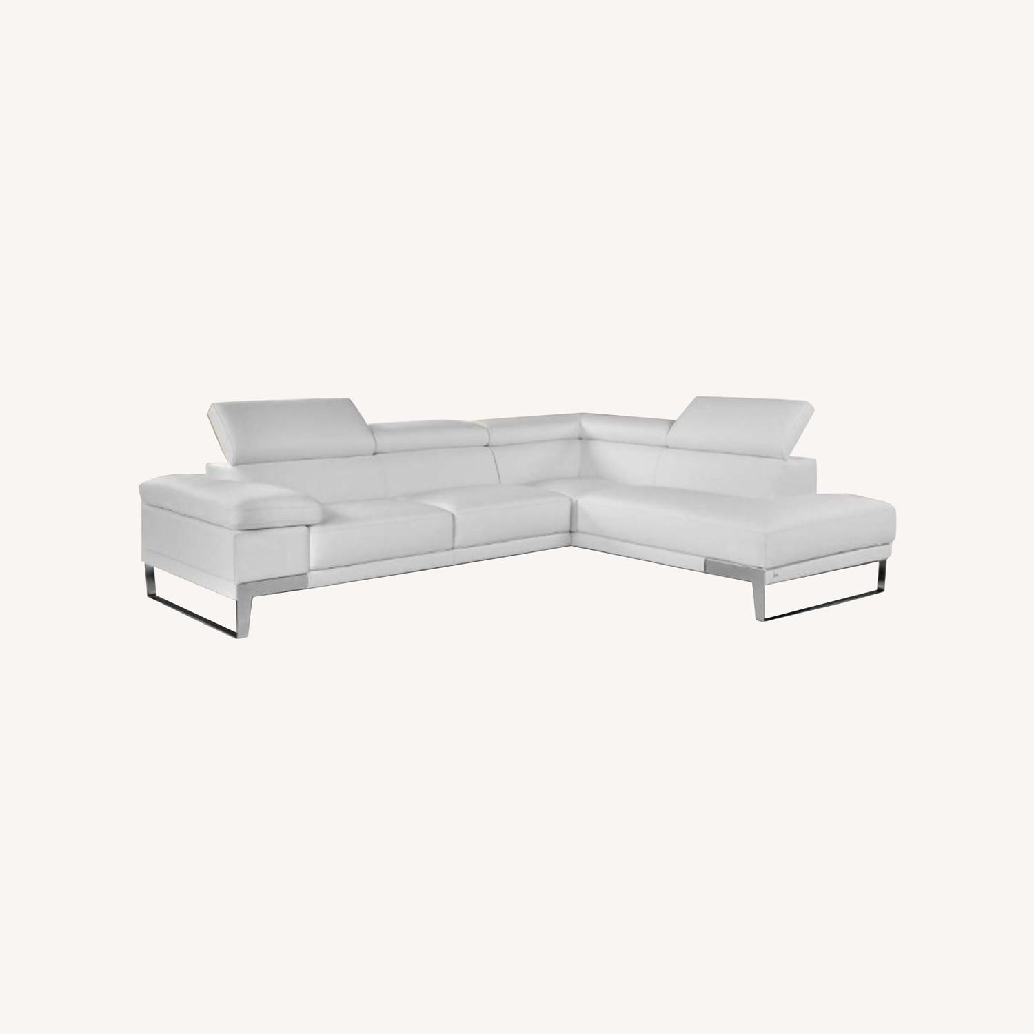 Seller's Notes:PURCHASED 1.5 YEARS AGO. ALMOST PERFECT CONDITION. LUXURY ITALIAN DESIGNER- REAL LEATHER Domus Italian leather sectional sofa manufactured by Nicoletti. This piece of furniture will serve you for years to come and bring more style, comfort and luxury to your living room. It’s wrapped in full Italian leather, offers plenty of space with comfortable seating and consists of two pieces sofa and chase. At the top of the sectional you will find adjustable headrests that change the design and comfort level of this sectional. Attractive stainless steel feet complete its unique modern style. The wise selection comes from the brand that not only promises the quality and durability but also makes unique luxurious items Nicoletti.