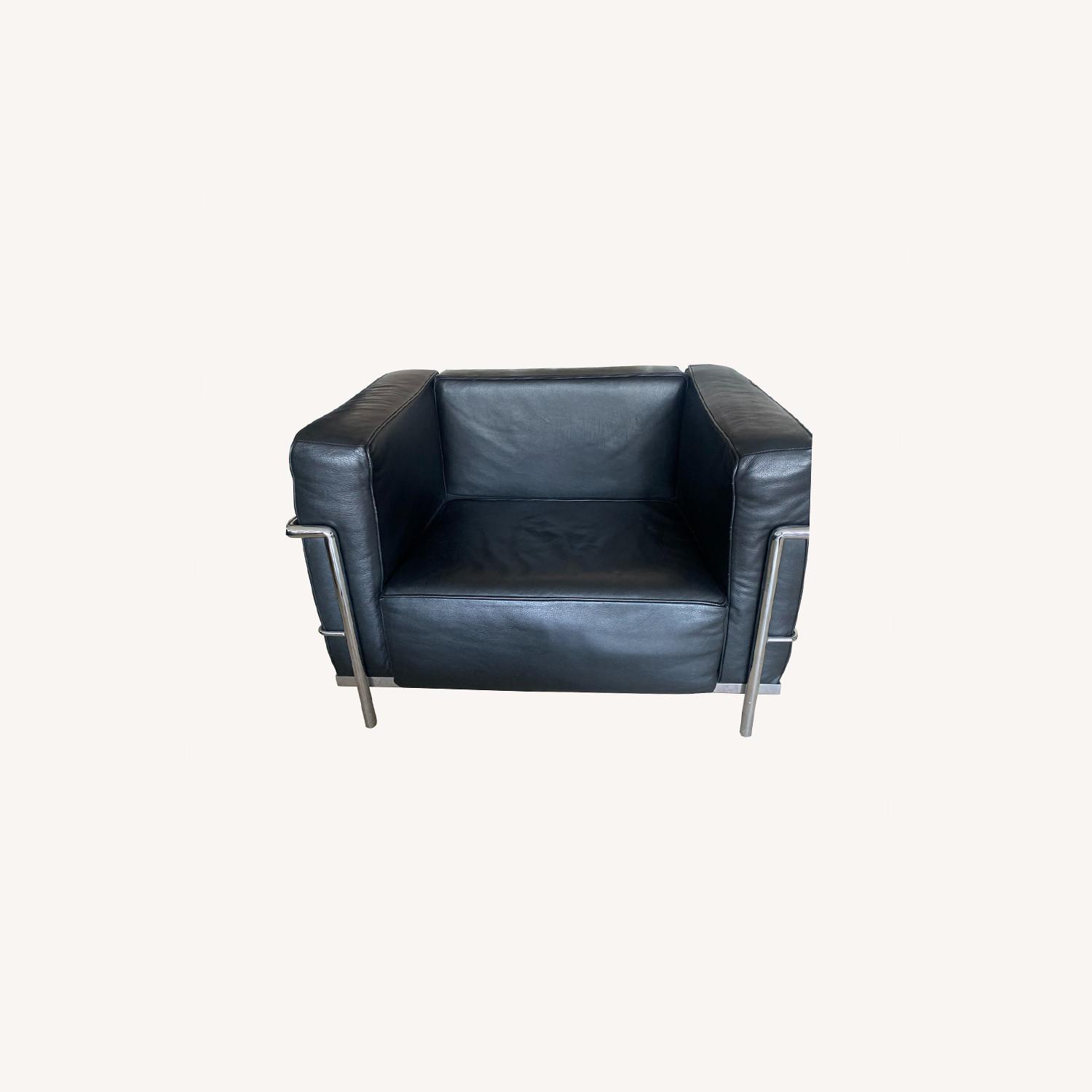 Seller's Notes:Leather Le Corbusier LC2 style chair with chrome accents. In overall good condition with some wear at the seams and some scratching of the leather at the back of the seat (from our dog).