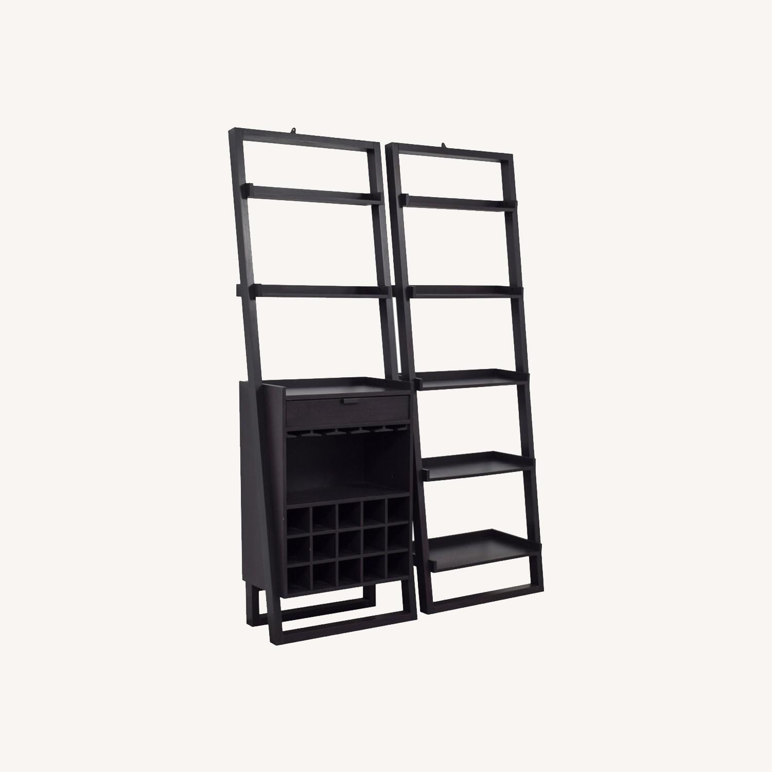 Leaning Bookcase and Leaning Wine Bar