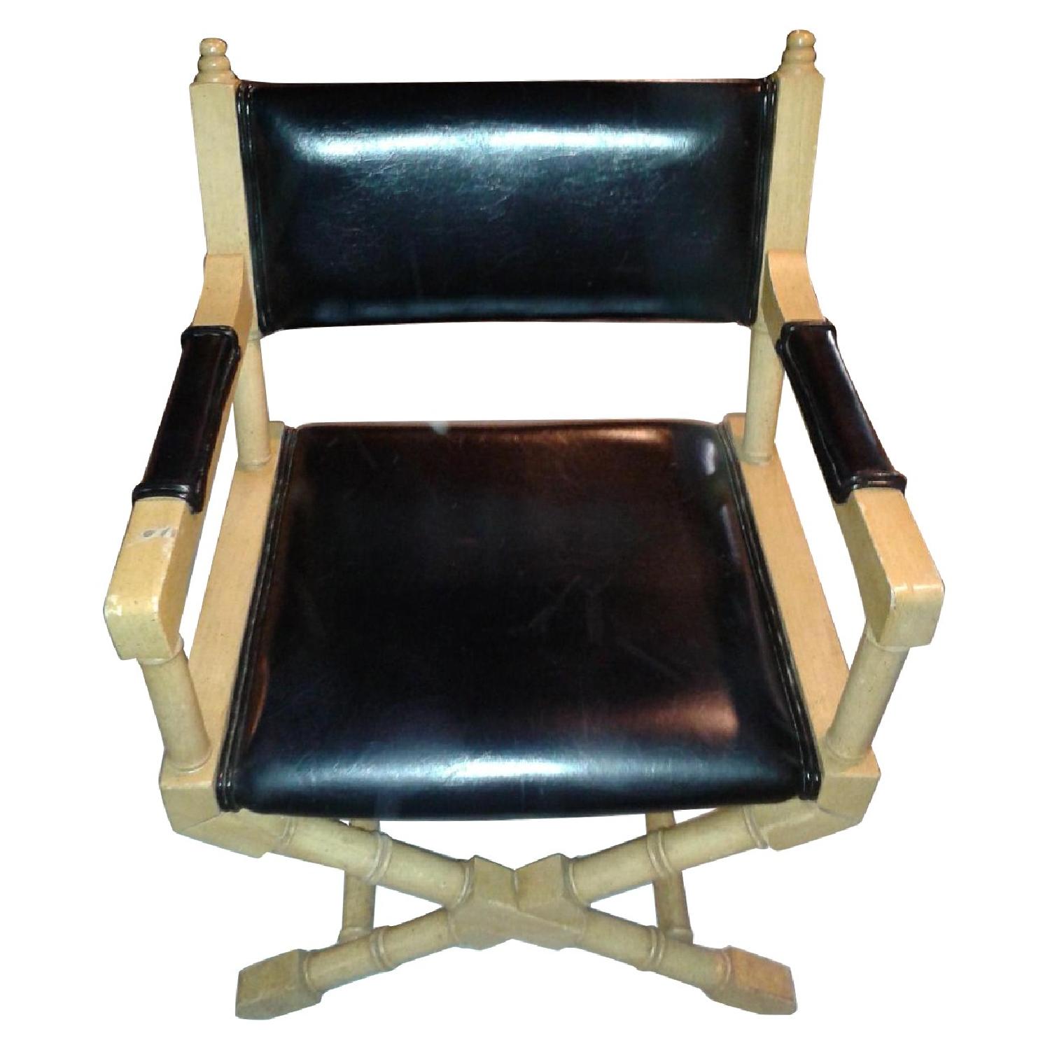 Seller's Notes:Leather Captain Chair Wood frame, black leather back and seat.
