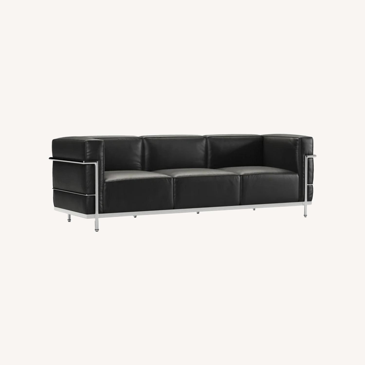 Seller's Notes:This is a very good replica of Le Corbusier Grand Sofa LC3. I got it used a few years ago for my photo studio. It's in great condition except there's a small tear in the back corner of one cushion which you can patch or replace the panel (I have a piece of tape over it, which works well. It's a solid couch, frame, cushions, and straps underneath are in great condition. I'm pricing this to sell because it doesn't fit in my new studio space.... and because of the small tear.