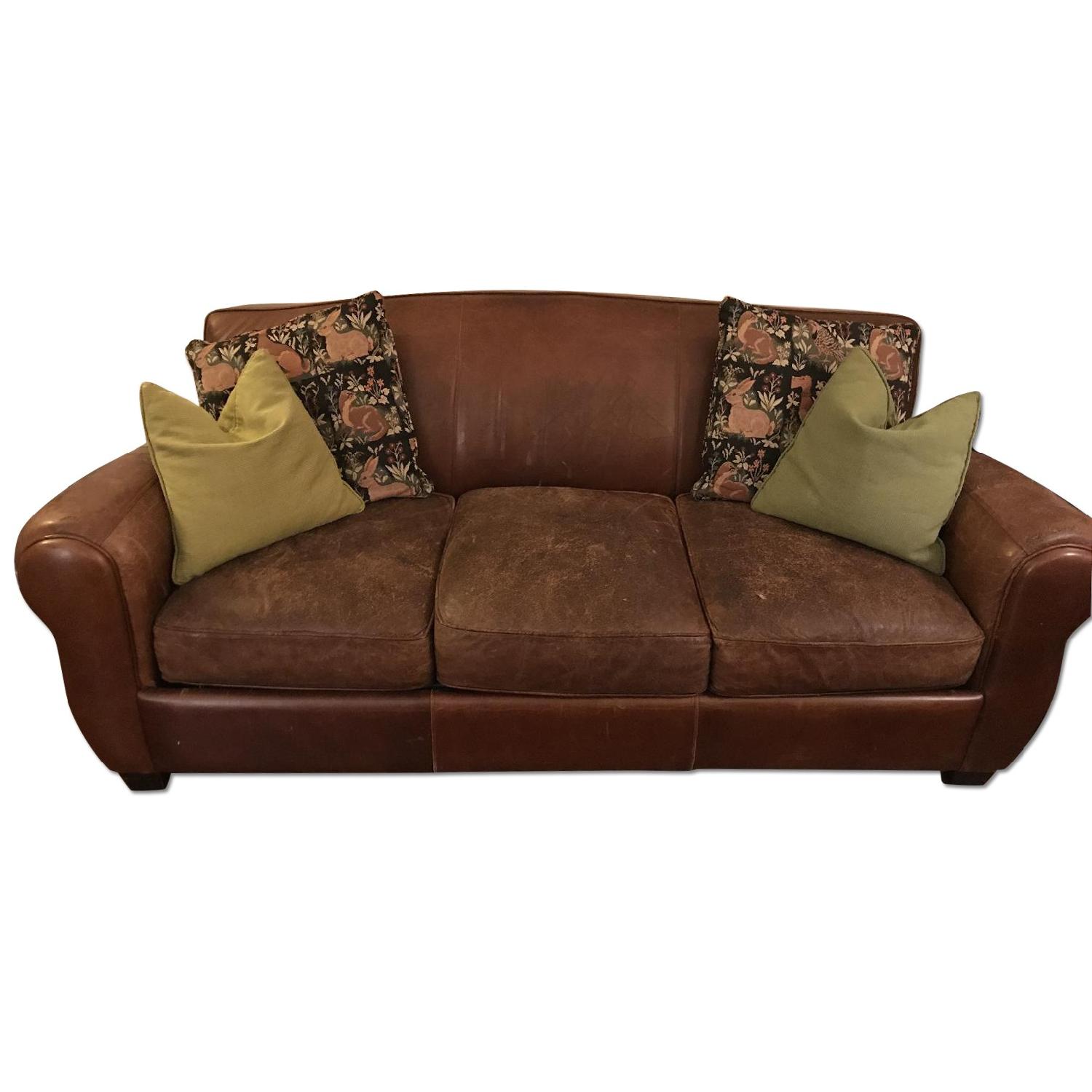 Seller's Notes:Well-loved leather, pull-out sofa. Some wear on the cushions and arms, but still comfy. It's served me well and I would love to keep it, however, I'm moving and can't take it with me. Could work well for a family with pets or children. Approx W71xH32xD37. (throw pillows not included:-)