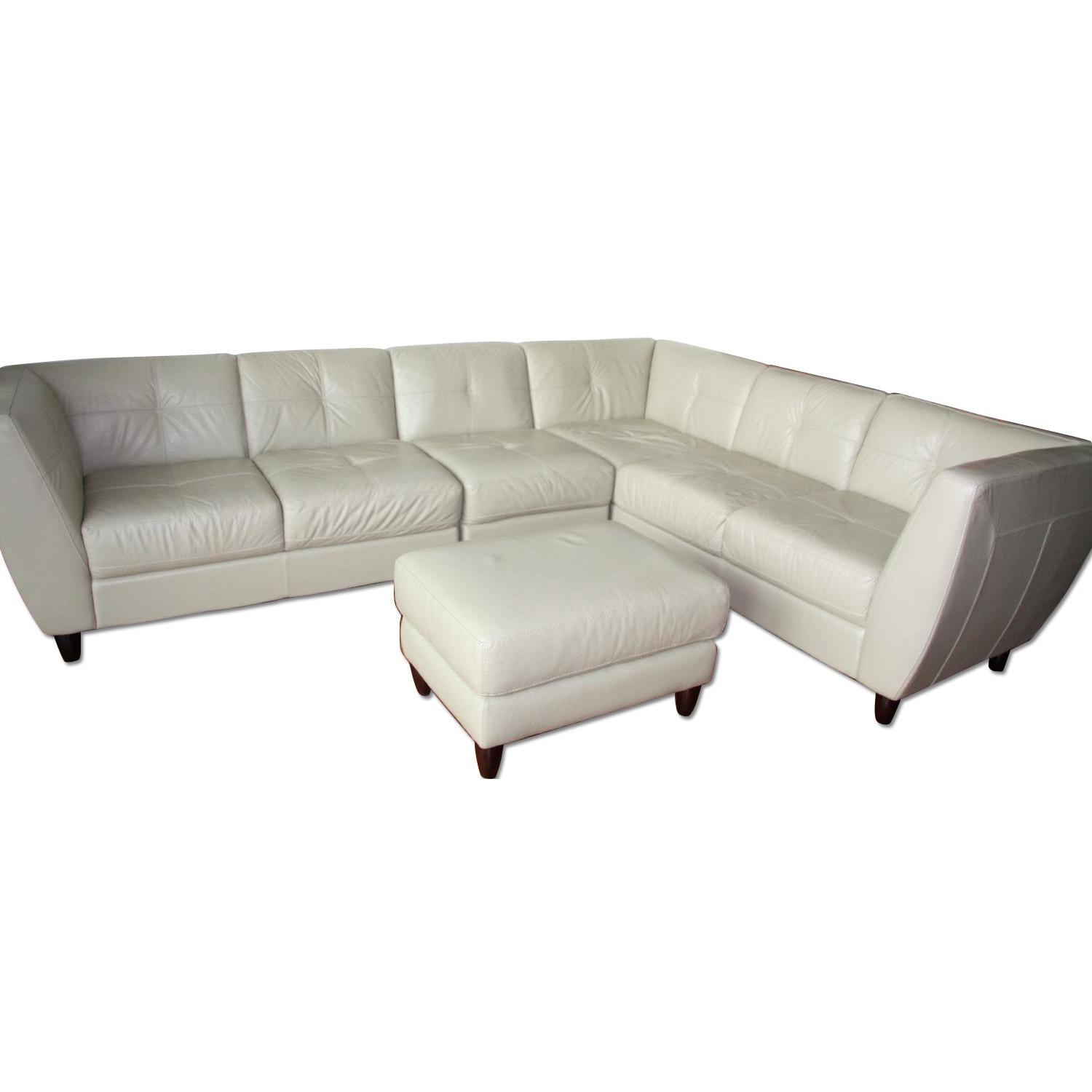 Seller's Notes:For sale is a beautiful and in perfect condition sage henley 4 piece sectional sofa. Made with top quality Italian leather. It is light green (olive/pistachio) color. We moved and can no longer fit it into our new apartment. No scratches/marks/hole/patches. Looks like new!