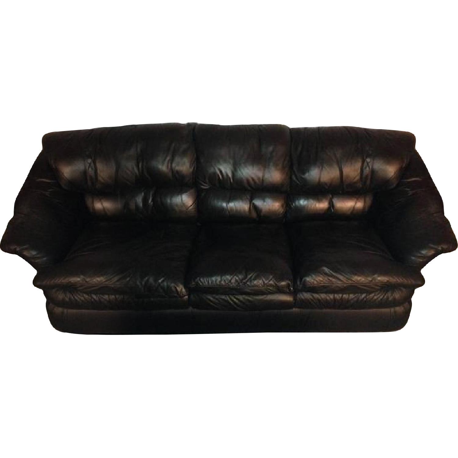 Seller's Notes:Excellent condition modern style black leather sofa. Minor scratch marks on left cushion. High quality piece of furniture made by LeatherTrend.