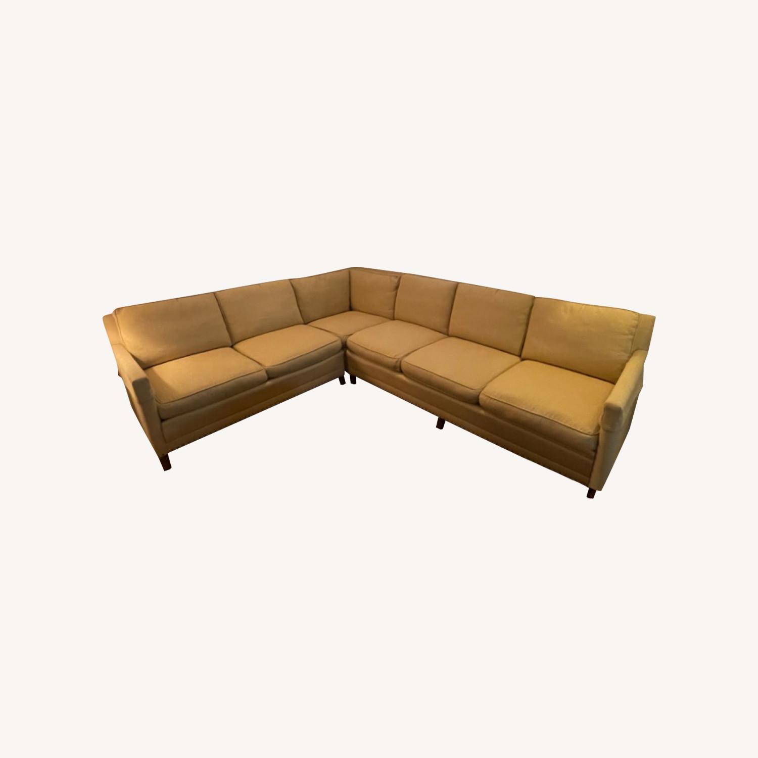 Seller's Notes:Custom, designer sectional couch made by Lee Industries (manufacturer of Serena & Lily’s upholstered furniture line and Crate & Barrell). Beautiful brass studding on trim. Made in USA. Purchased originally for $6000. In very good condition. A few scuffs but none that are noticeable. Couch is in 3 pieces to allow for easy moving into smaller spaces. Light as well - easy to move with 2 ppl. Dimensions: 9 ft (4 seats) 7 ft (3 seats)