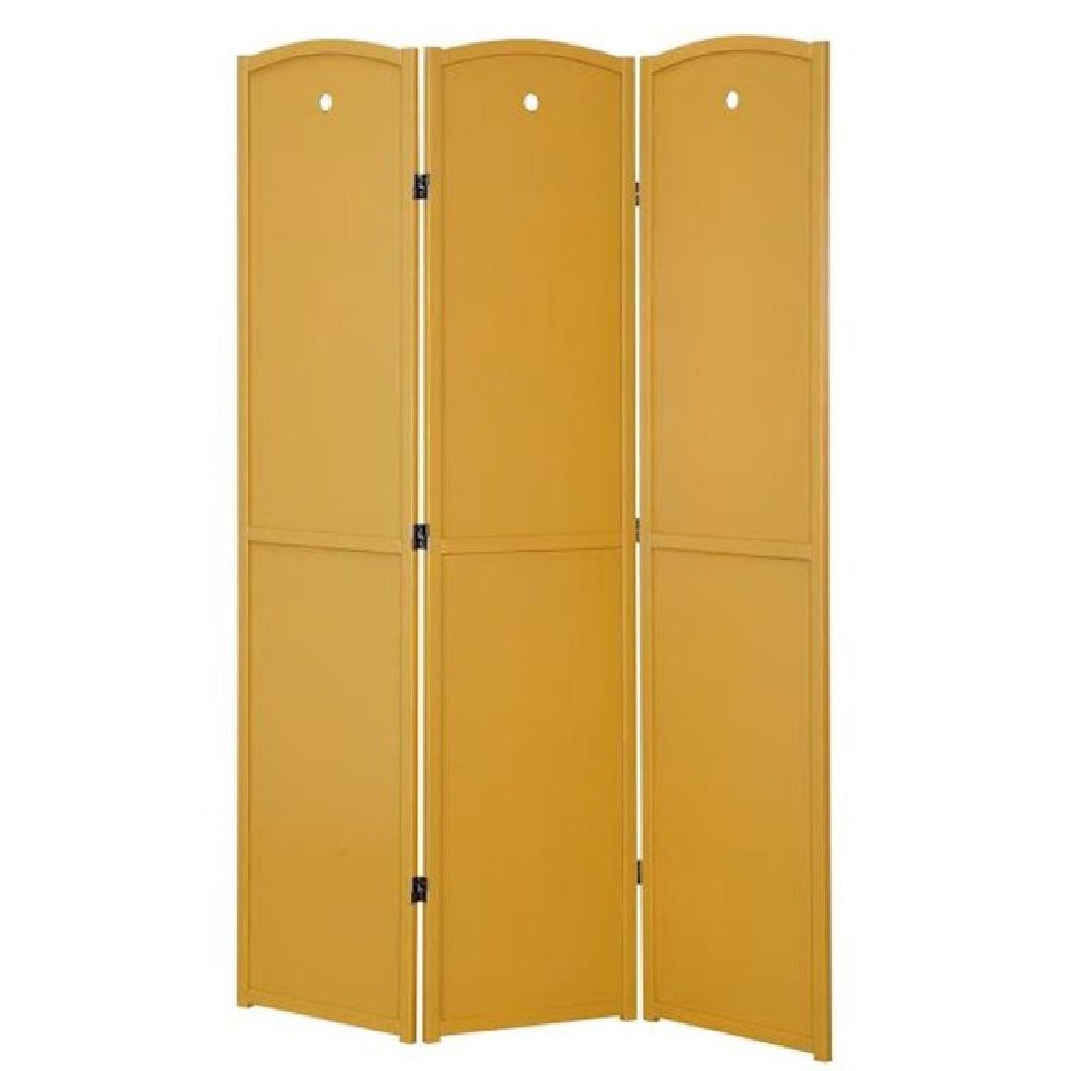 Seller's Notes:LAST CHANCE! Solid wood room divider in a lovely honey yellow, consisting of 3 panels. Three sets available. Very sturdy and really attractive; perfect for dividing a room or creating a wall or niche. Only used for one month! (Don't need them in my new place). Minor scratches from movers (labeled in photos for each set).