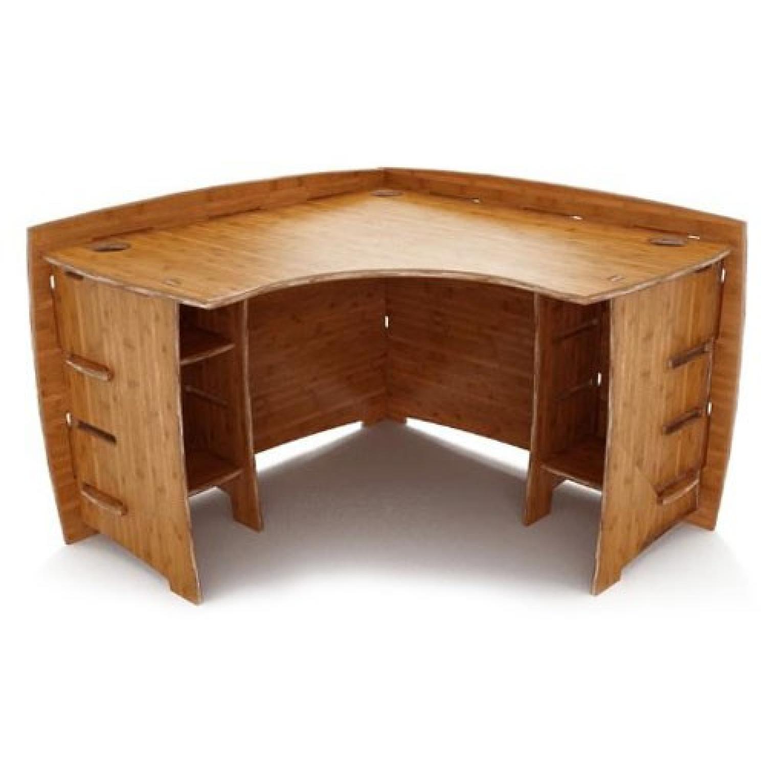 Seller's Notes:The 47" x 47” Legare Corner Desk is perfect for the home office. The work surface is reversible for many years of dependable use, and its multiple 12" shelves provide handy storage for books and CDs. Desk comes with a 29" accessory shelf ($30 value). Features: - Large work surface takes up little floor space. - Includes three 12" shelves to provide handy storage for books and files. - Can be used in combinations with our Bridge and Extension units to expand workspace. - Measures 47 by 47 by 32-inches; tool-free assembly. - Manufactured entirely from highly sustainable, organically grown bamboo from the famed “moso” forests of China, inherently known for its perfect color, grain, density and strength - Amazingly simple 3 minute tool-free assembly - Laminated using E-1 grade VOC-free adhesives. - Modern curvilinear design appeals to young, nomadic urban dwellings, start-up businesses and students Modular Legaré Peninsulas, Bridges or Extensions can be added for limitless workspace configurations, see here: http://www.legarefurniture.com/office.htm#.XNI6kdNKjjB