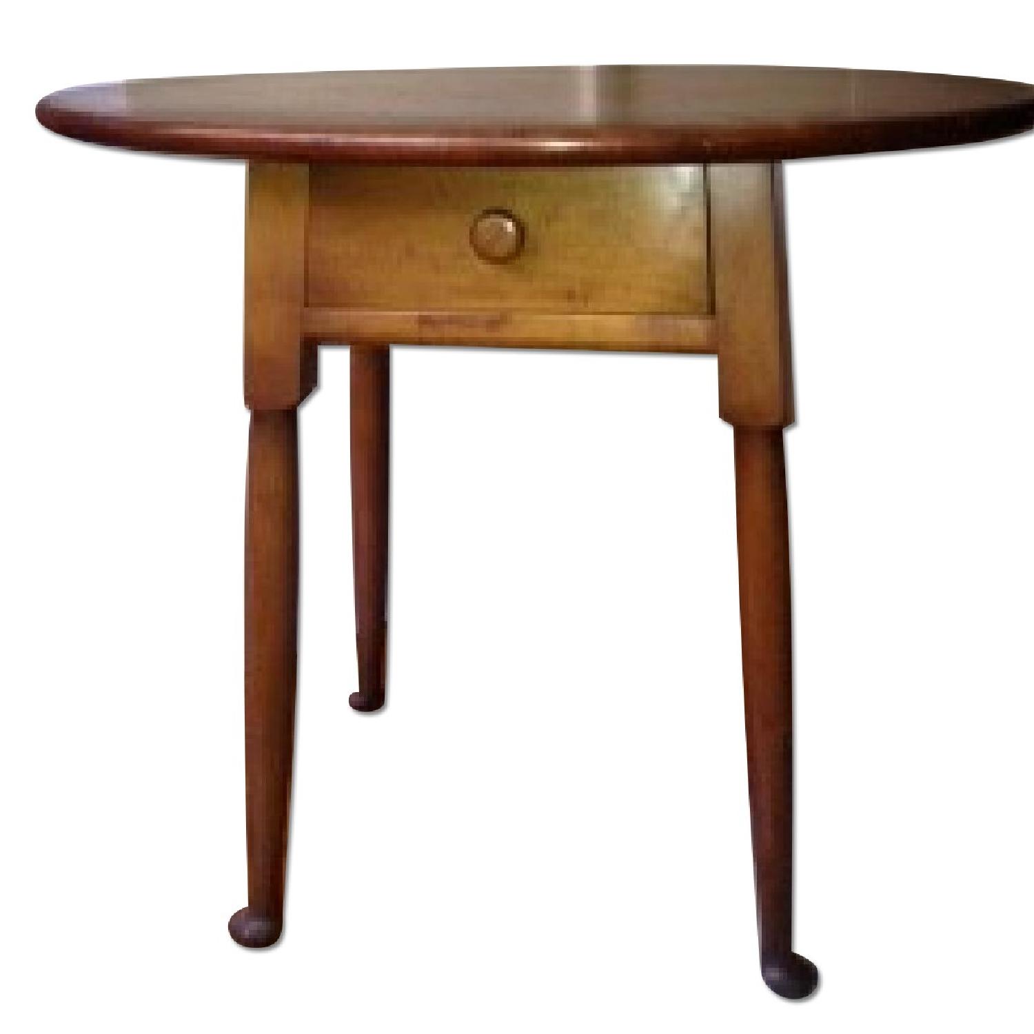 Seller's Notes:This is an original Leopold Stickley Cherry Side Table with center drawer. The original :eopold Stickley branding and identifying labels are in the drawer and can be seen in the photo. The table was manufactured in Fayetteville NY and was purchased from Hathaway's, 51 West 45th Street in NYC, and the store identifying label is in the drawer as well. There are vey minor marks on the top of the table.