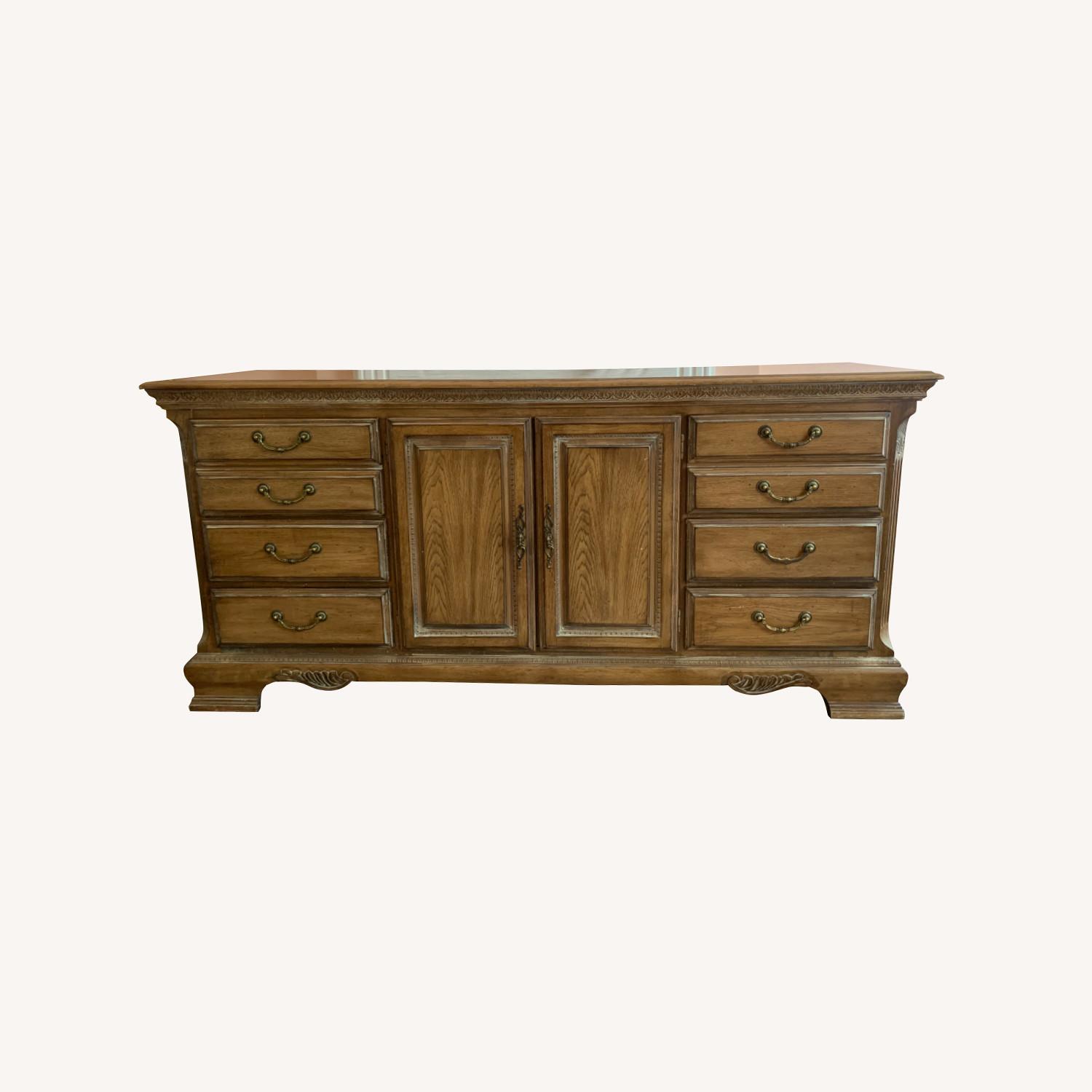 Seller's Notes:Beautiful carved solid wood dresser. Vintage with original hardware. 9 large drawers. Furniture isn’t made with this quality anymore sadly. Really beautiful piece.