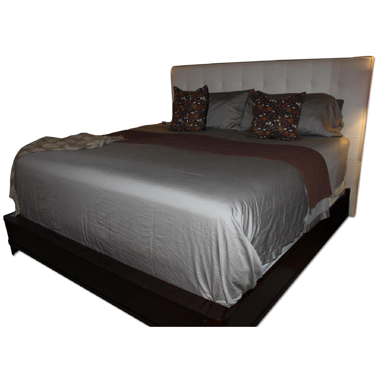 Seller's Notes:4pc Zacara Collection set by Lexington - The entire set has a streamlined design with Zebrano veneers in a warm sable finish detailed with champagne hardware. Contemporary without hard edges. We have LOVED this set from the day we bought it, but are simply looking for a change. It has never been moved since the initial assembly. We also live in a smoke-free house as well. Peninsula Upholstered King Bed: Sleek and sophisticated, the Zacara Peninsula Upholstered Panel Headboard with Ivory Fabric and Frame Set in Sable is truly stunning in any bedroom. A contemporary design makes this headboard and frame set the perfect choice for giving your bedroom an updated look. ** Footboard has slight wear and tear along the edges. 80.5"W x 87.75"L x 58"H Two Tiered Terra Nightstands: Warm sable finished with champagne hardware. Two Felt-Lined drawers. ** One of the nightstands has a minor ring shaped blemish, approximately 5" in diameter. 24"W x 19.5"D x 28"H Nine Drawer Lowell Bedroom Dresser: Warm sable finish with champagne hardware. Nine drawers with the top row of drawers felt-lined, 1 divided for jewelry. ** Dresser has slight wear and tear along the edges and corners of the unit. The center of the unit slightly bows from the weight of our TV. It is really only noticeable when you're looking at the dresser from a side angle, and even then, it is very hard to see. I tried to capture it in the photos, but it just wasn't visible enough to see. 66.25"W x 20.25"D x 39.25"H