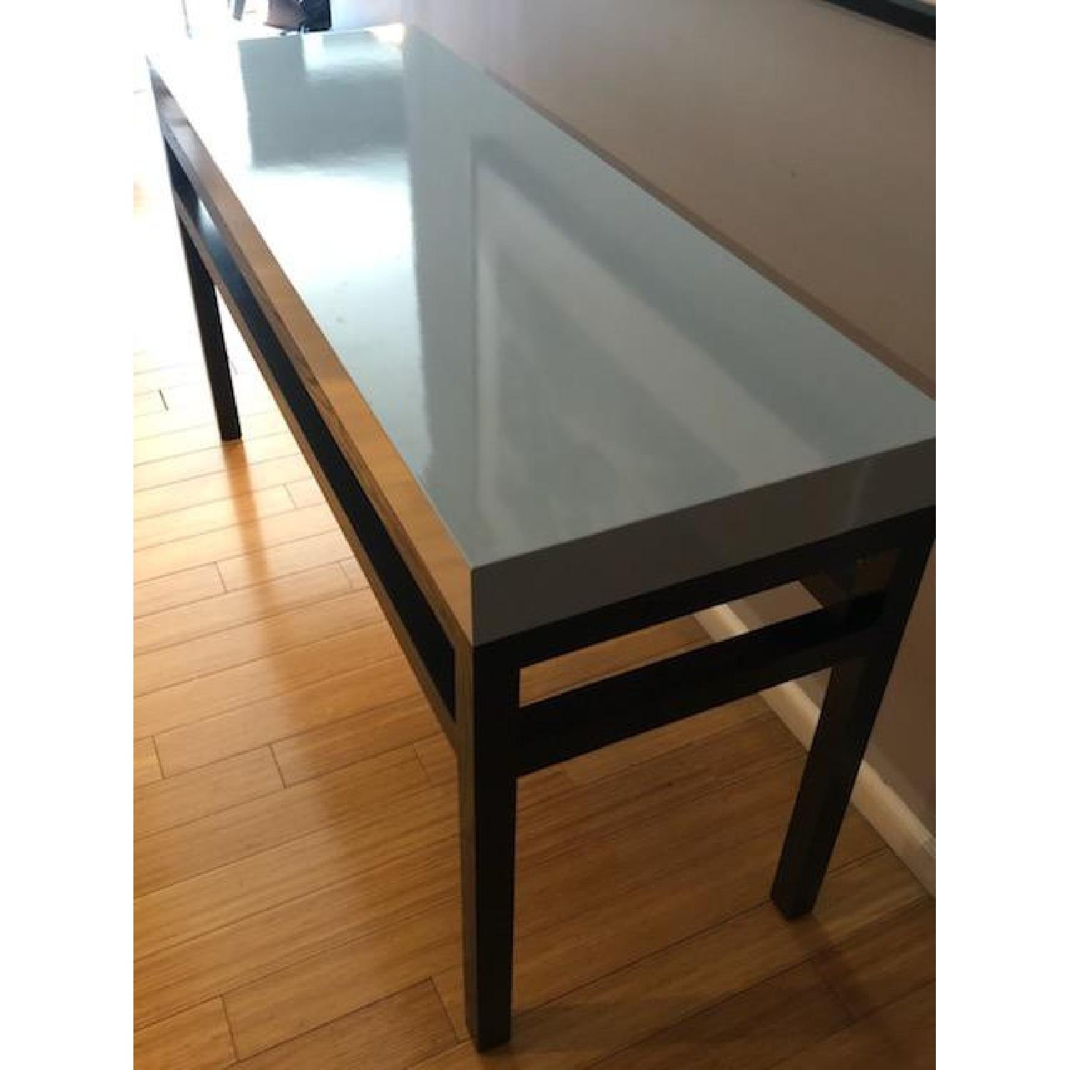 Seller's Notes:Light gray top with dark brown legs long entryway way table in good condition